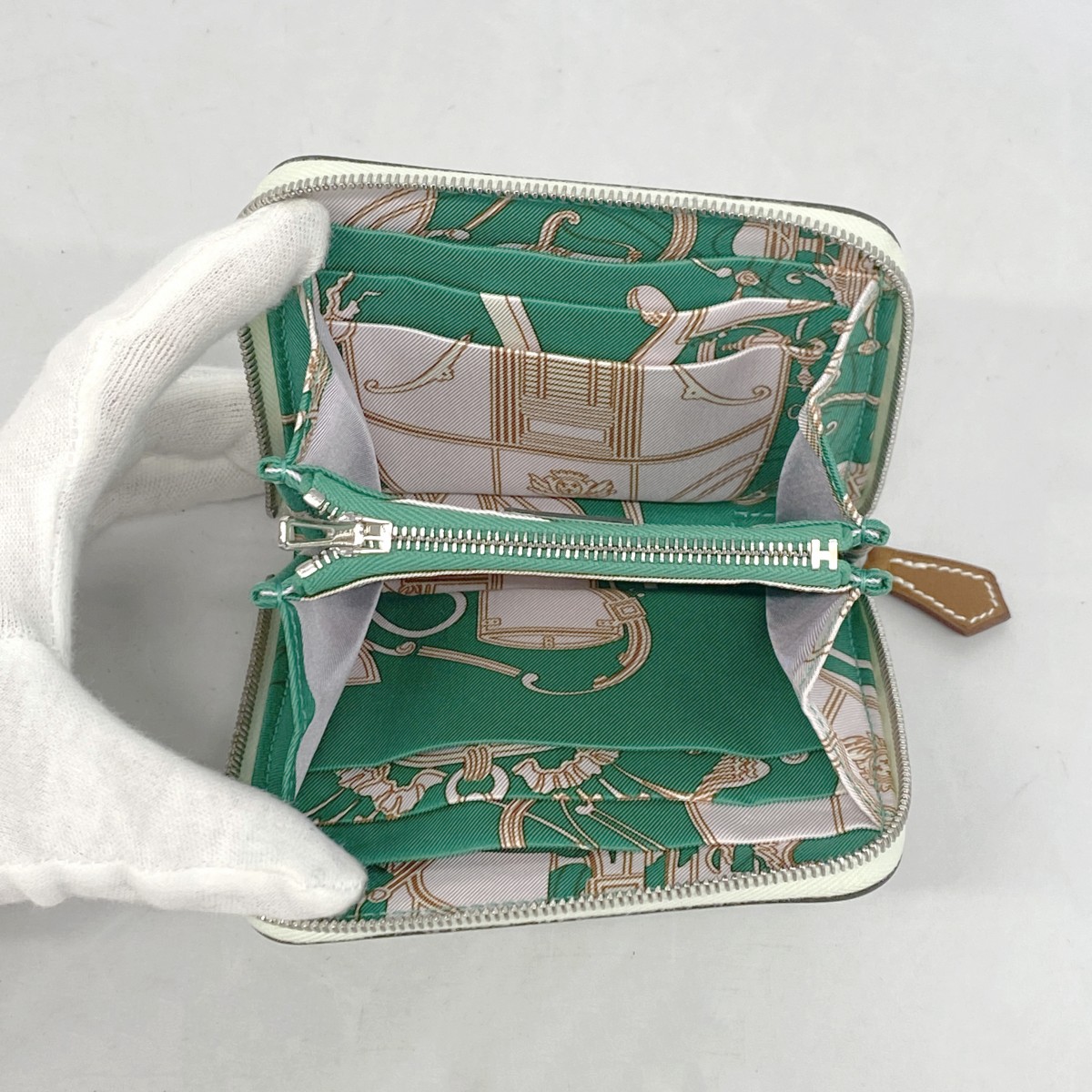 ★最終価格★SALE【5pb1511】エルメス コインケース アザップコンパクト シルクイン ヴォーエプソン ヴェールフィズ シルバー金具 U刻印【中古】レディース