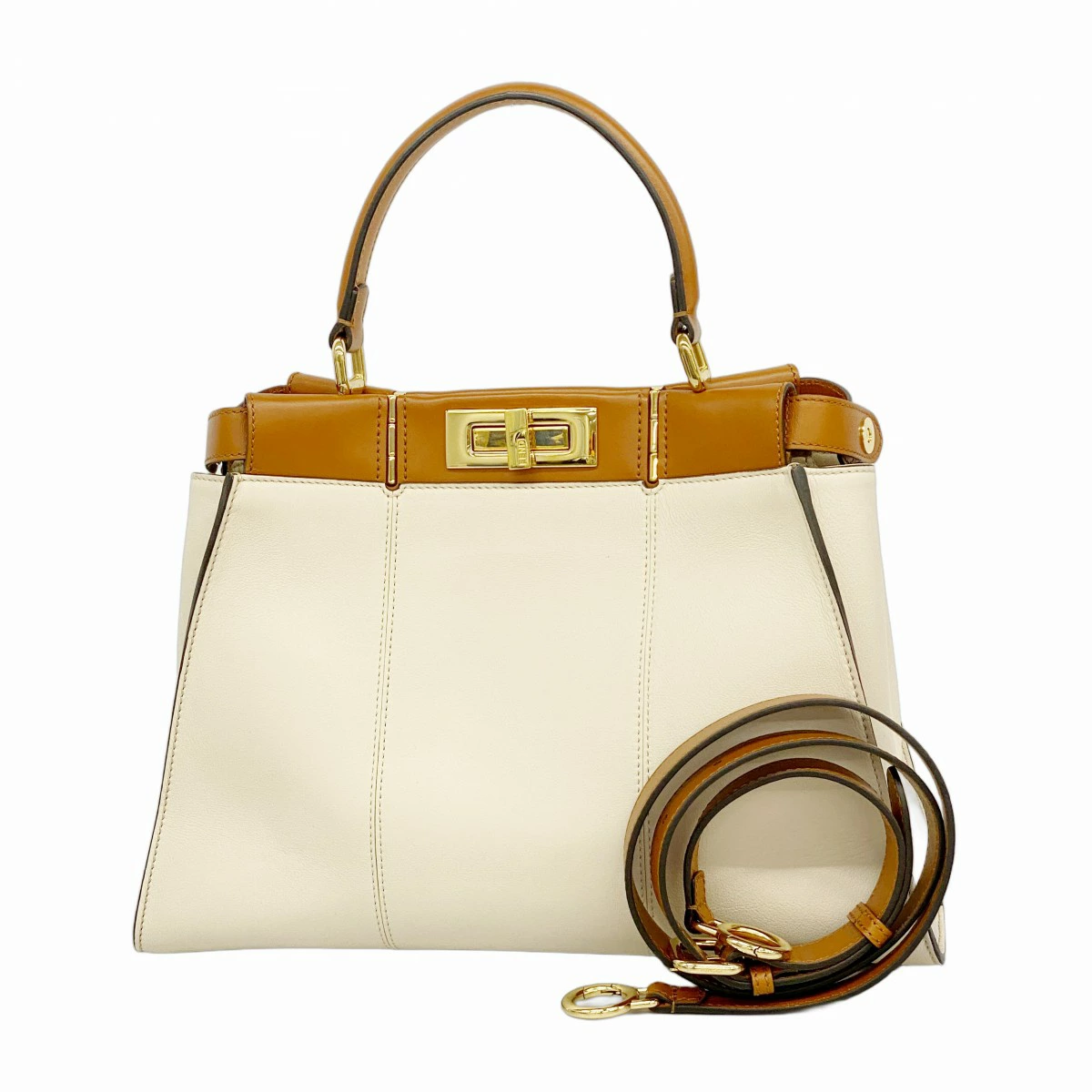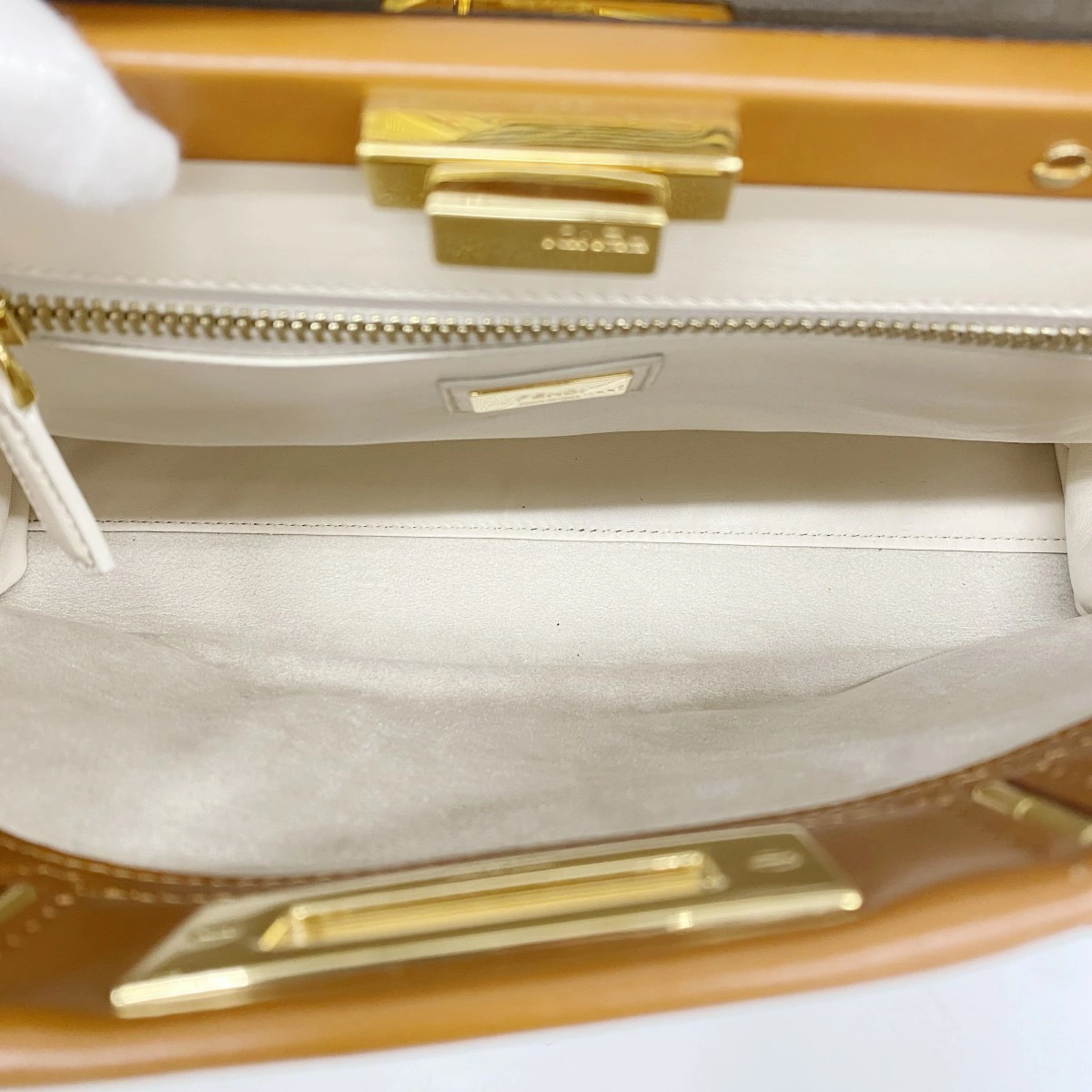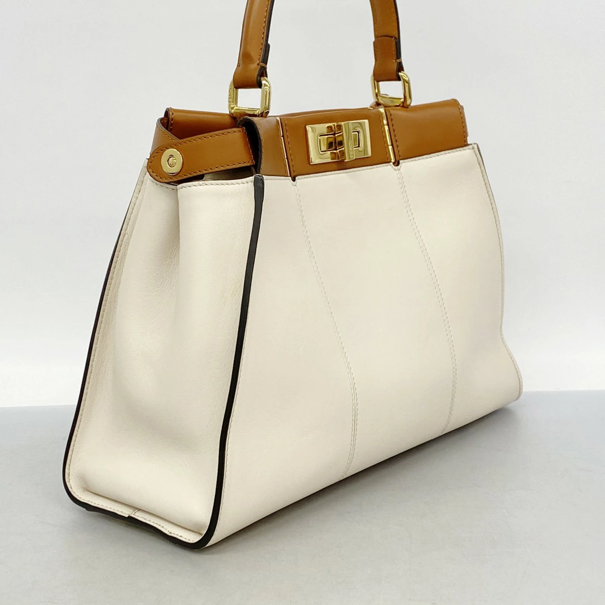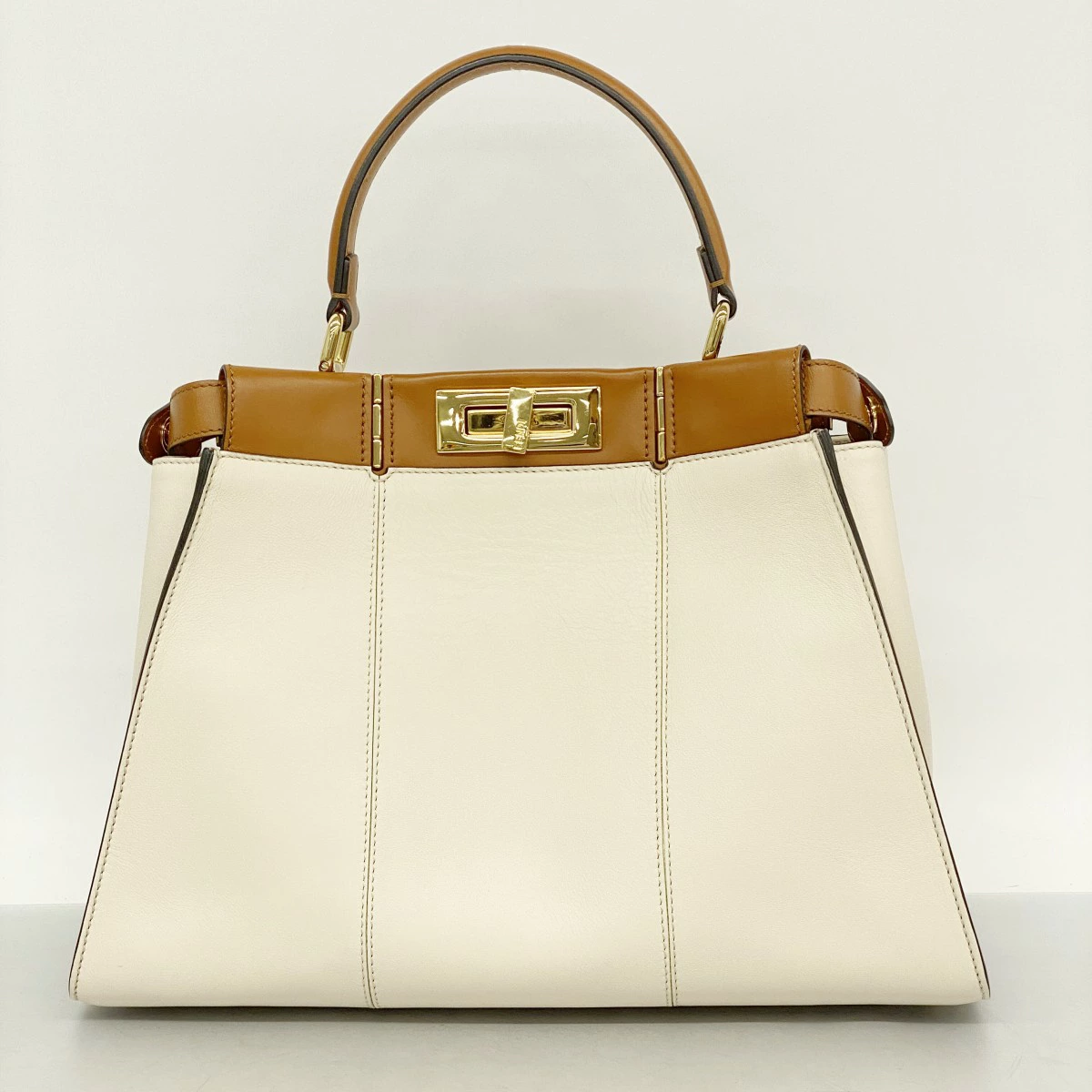 ★SALE【5pb2788】フェンディ ハンドバッグ ピーカブー レザー ホワイト ブラウン ゴールド金具 2wayバッグ【中古】レディース