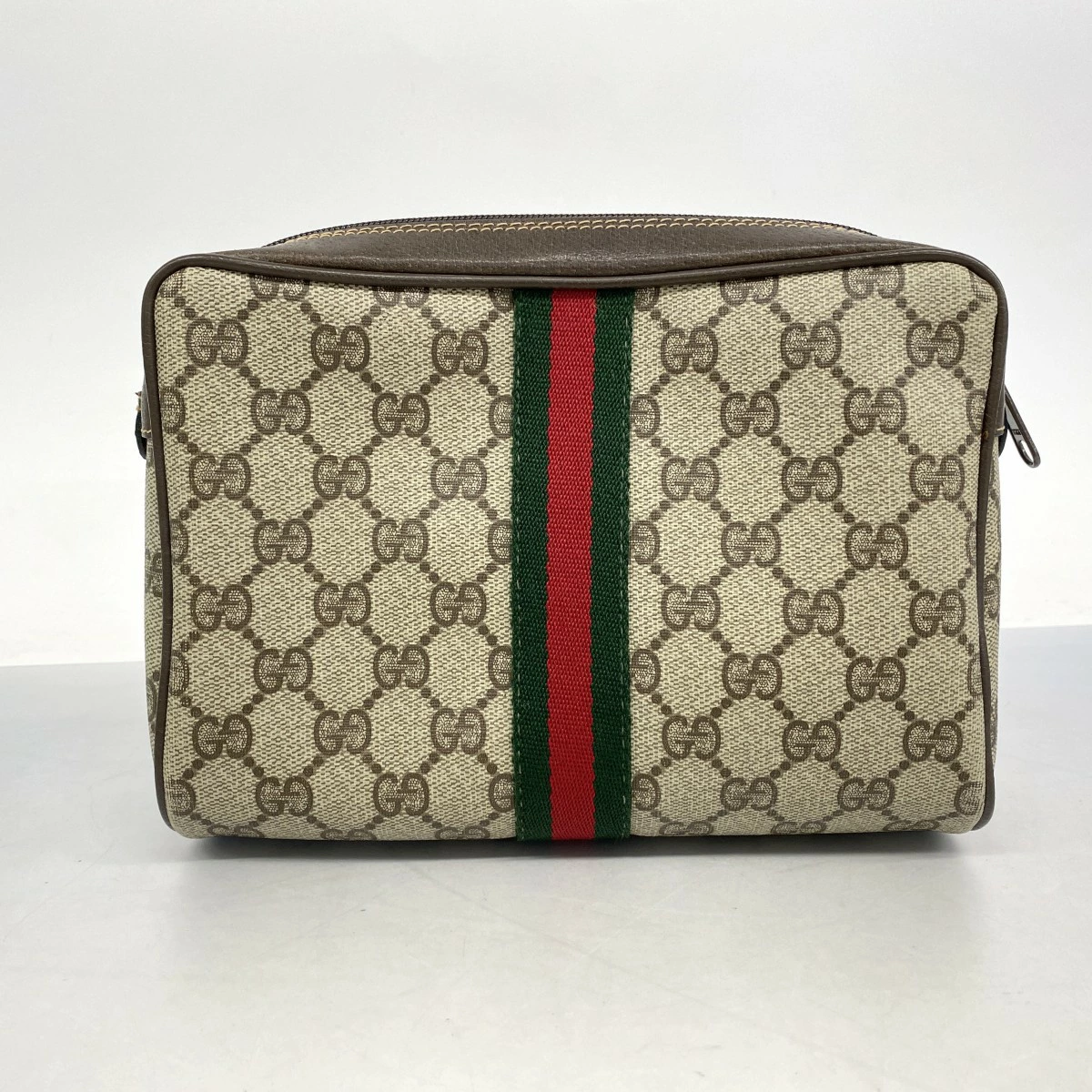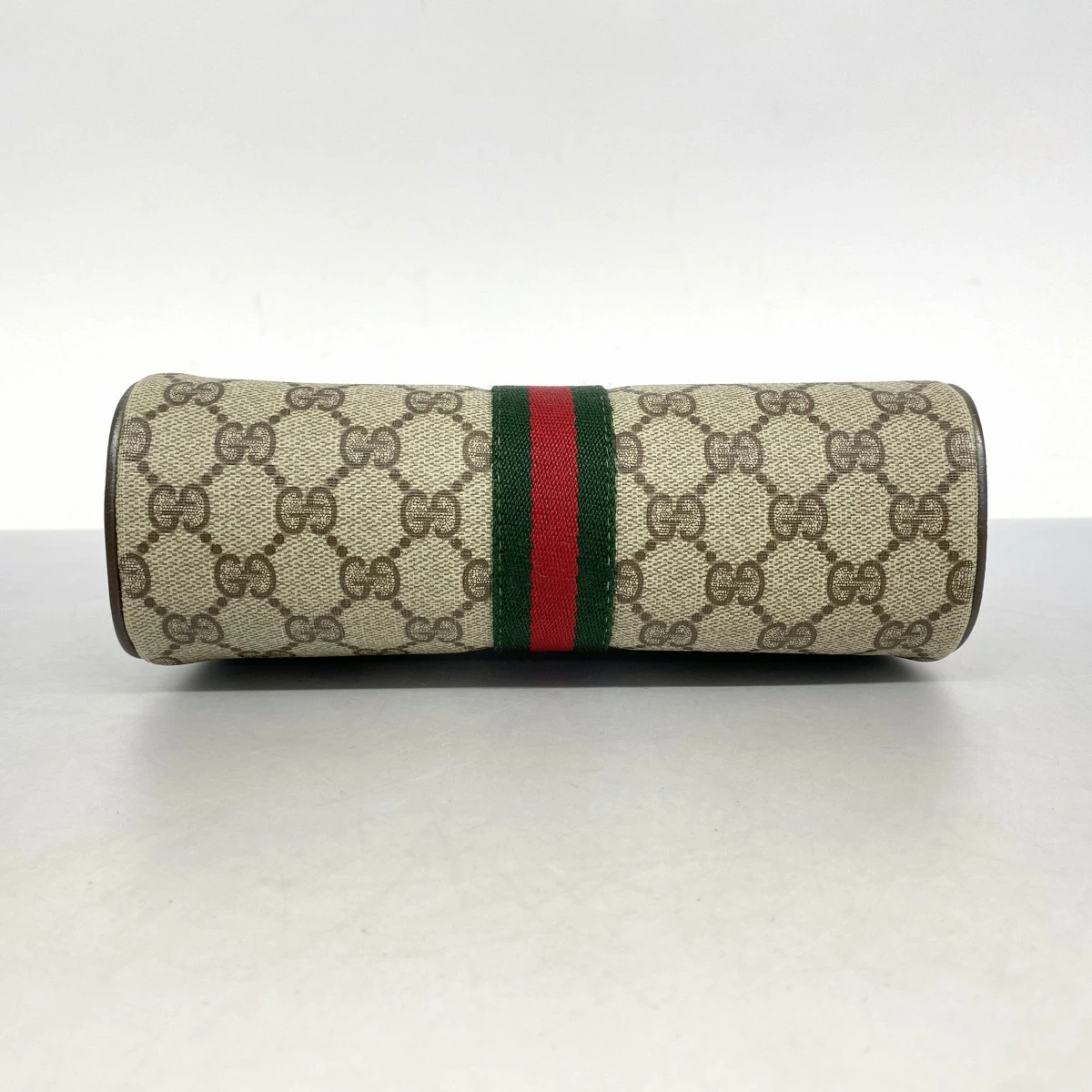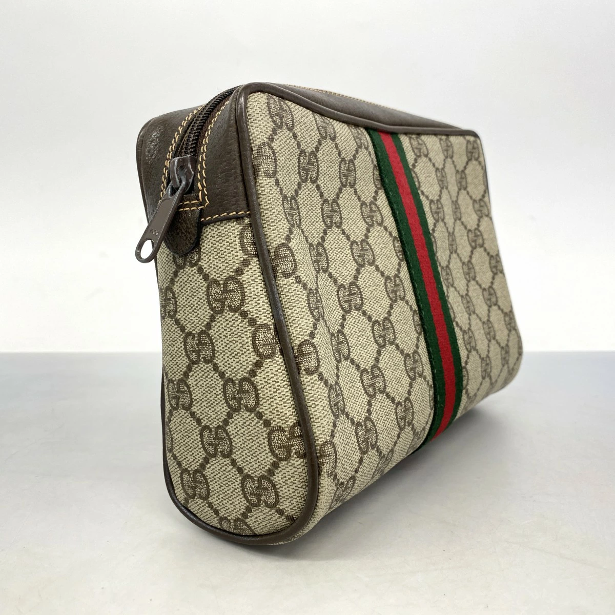 ★SALE【5pb2820】グッチ ポーチ GGスプリーム/シェリーライン 32 014 3553 PVC ブラウン ゴールド金具【中古】レディース