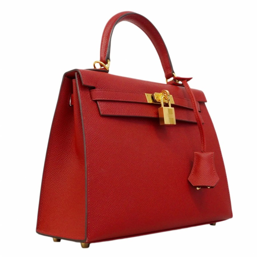 ★SALE【6cd5764-g】エルメス ハンドバッグ ケリー25 ヴォーエプソン ルージュカザック ゴールド金具 U刻印 2wayバッグ【中古】レディース