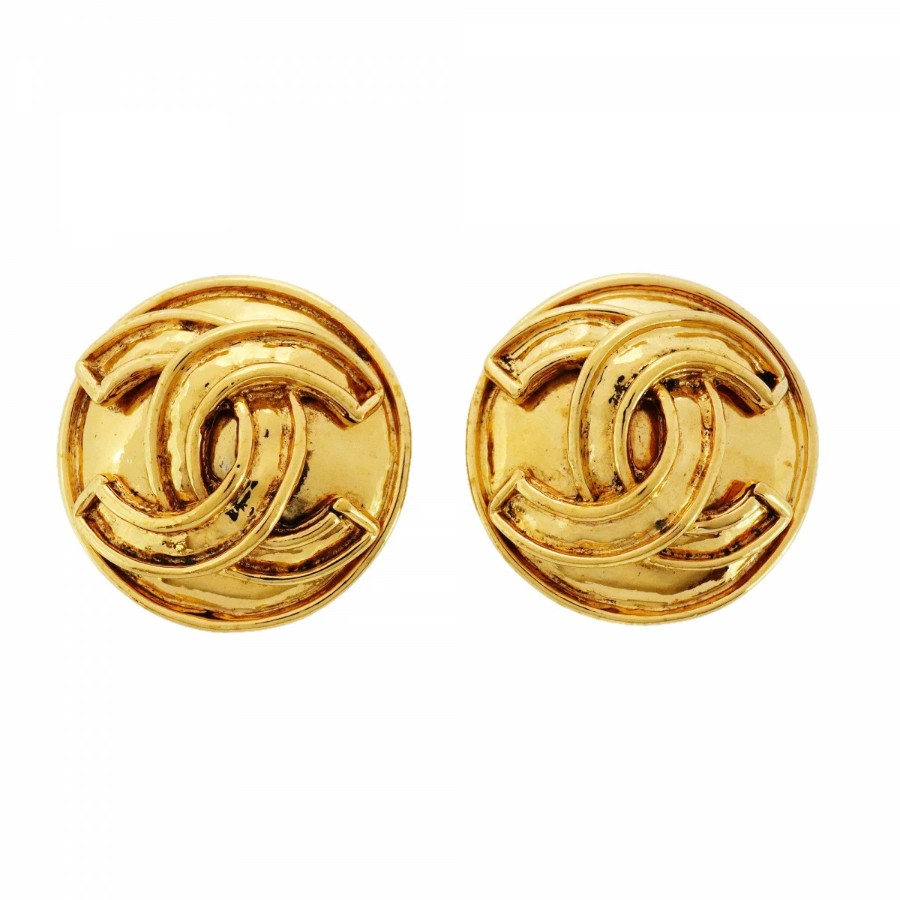 ★SALE【6jcb0869-k】シャネル イヤリング ヴィンテージ ココマーク 丸型 サークル GPメッキ ゴールド【中古】レディース