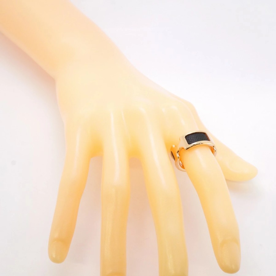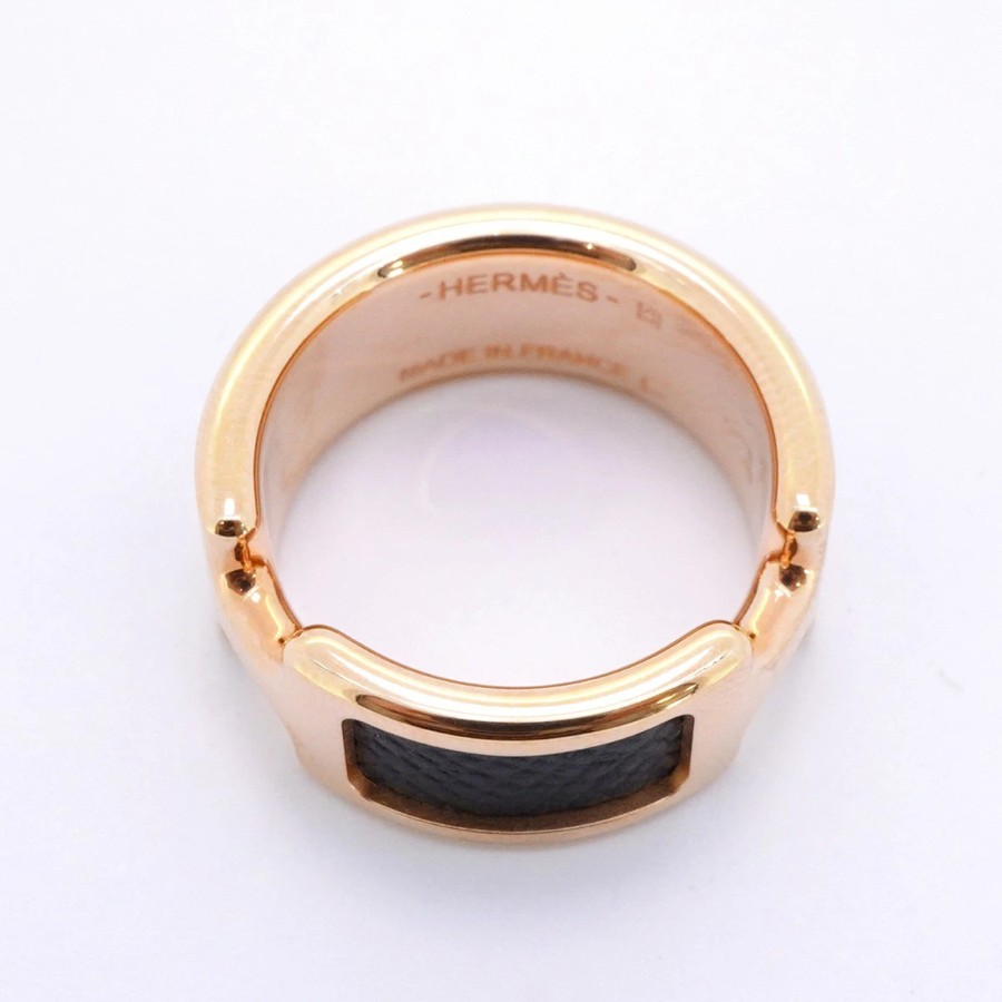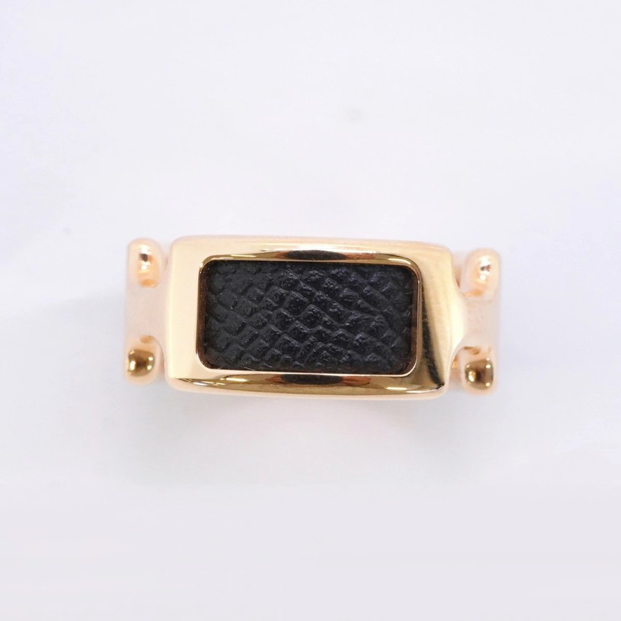 ★SALE【6jcb0900-k】エルメス リング オランプ GPメッキ レザー ブラック ピンクゴールド 16号【中古】メンズ レディース ユニセックス