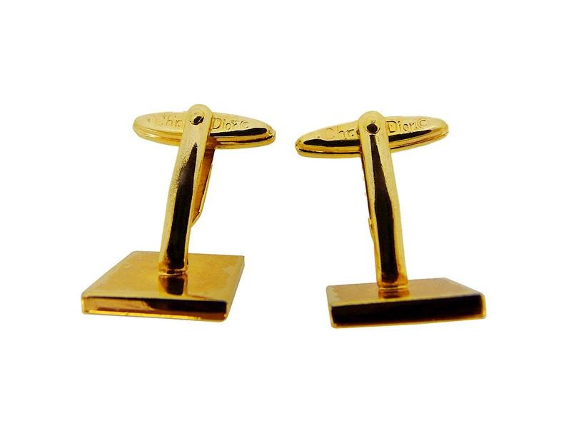 [24% OFF Coupon] Dior Cufflinks with CD Mark, Rhinestones, Swivel, Gold and Black, Men's, Pre-owned