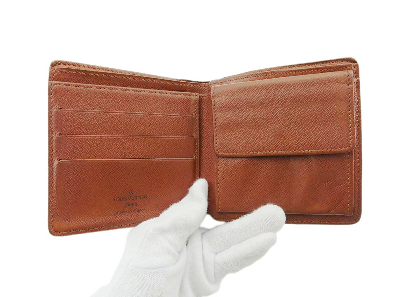 | コンディション | 全体の状態詳細:まだまだお使いいただけます。社外リペア跡(内側着色、角接着)あり。その他 スレ&汚れ(内側&札入れ&小銭入れ&ポケットもあり) ほつれ&ヒビ割れ(折り曲げ部角) コバ切れ(1cm程) などの使用感があります。 |