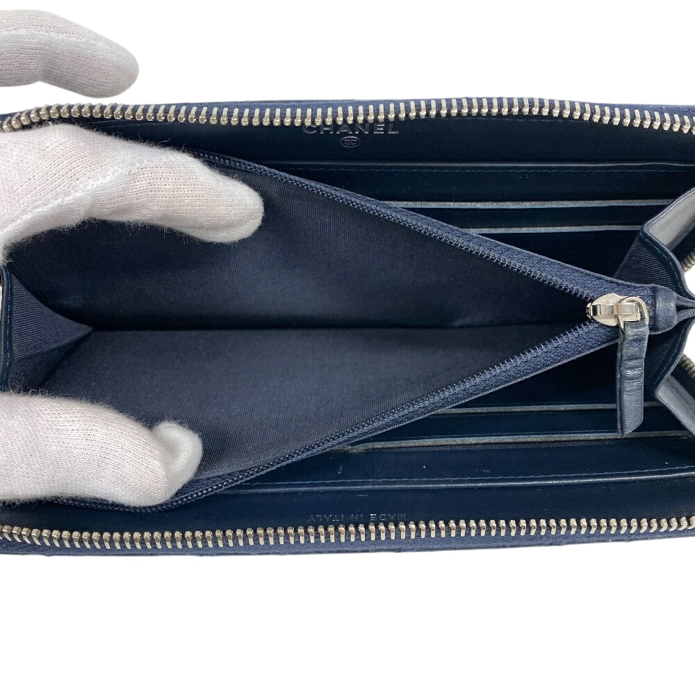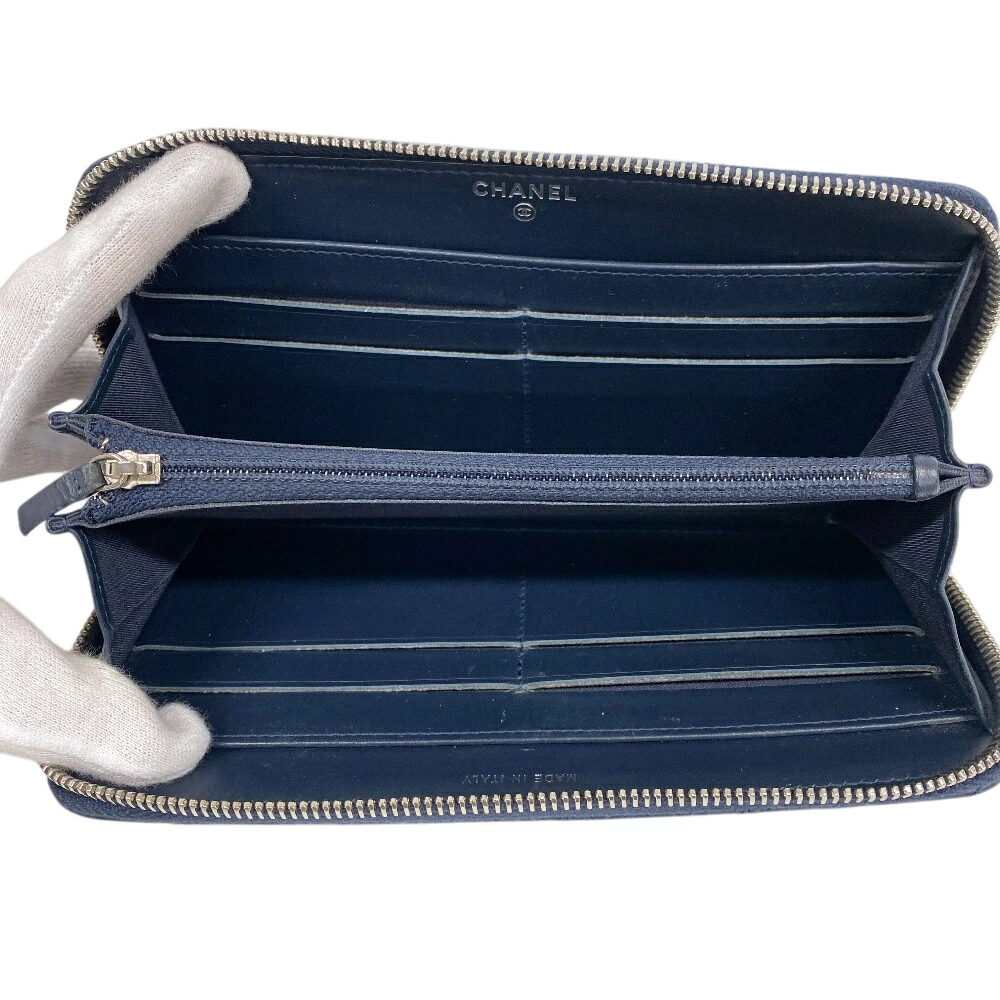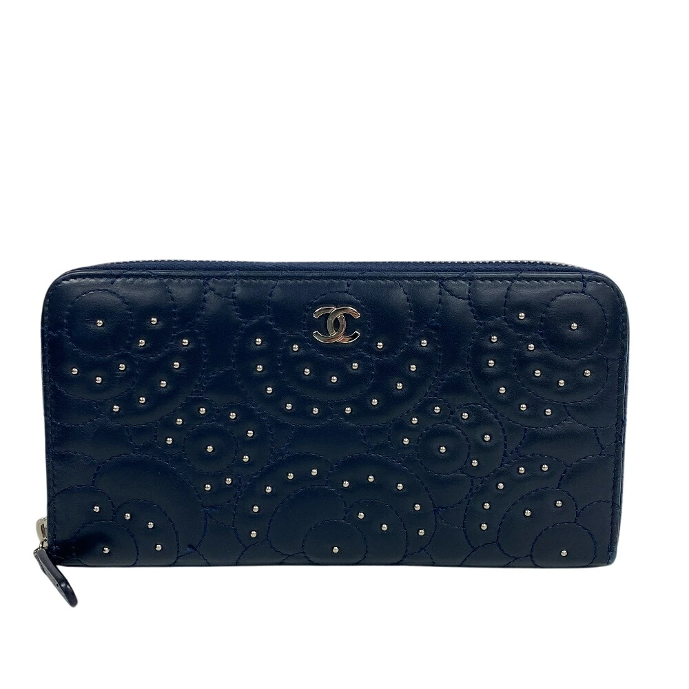 [5% Off Coupon Available Now!] CHANEL Camellia Long Wallet with Zip-Around Design, Card Slots, Coin Purse, Navy Blue, Women's, Recommended, Popular