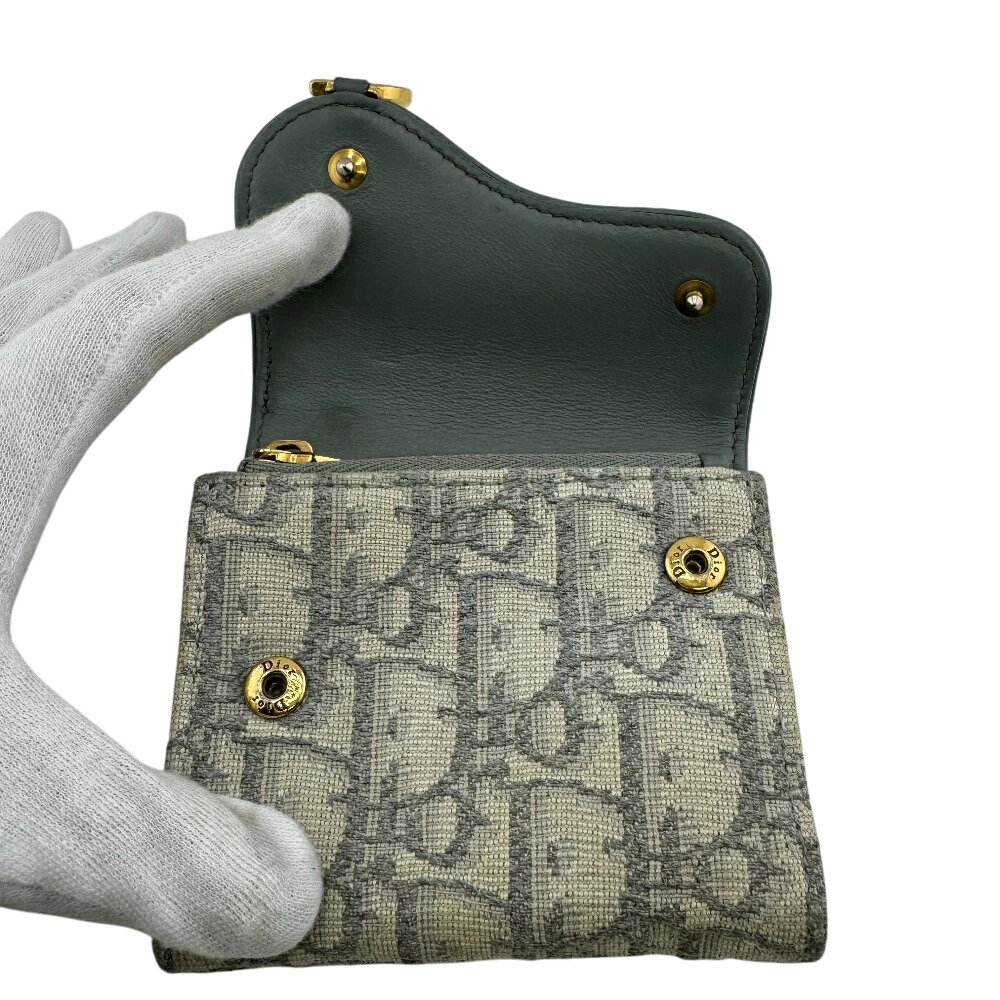 商品名 | Christian Dior/クリスチャンディオール サドル コンパクトウォレット オブリーク 三つ折り財布 ブルー系 レディース |