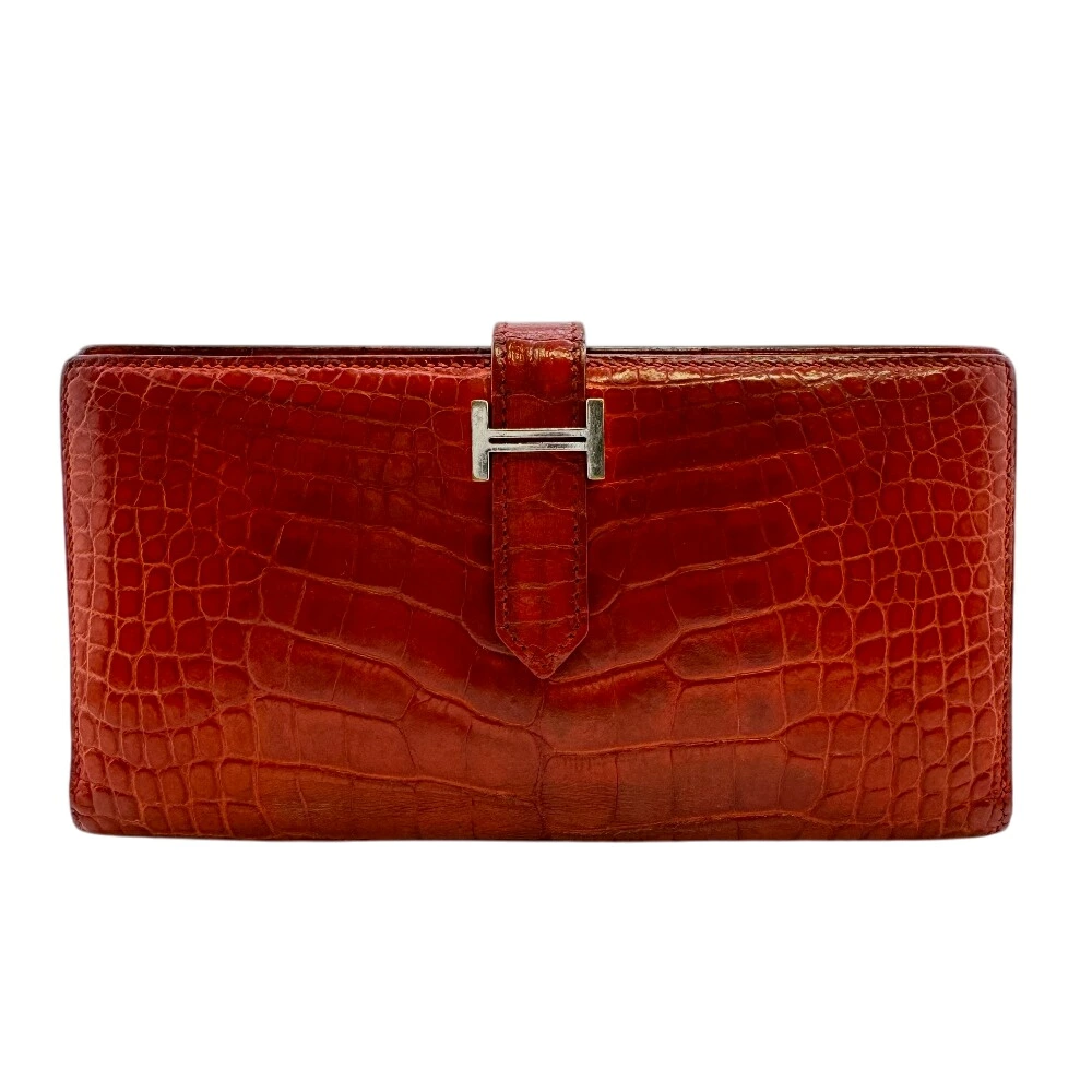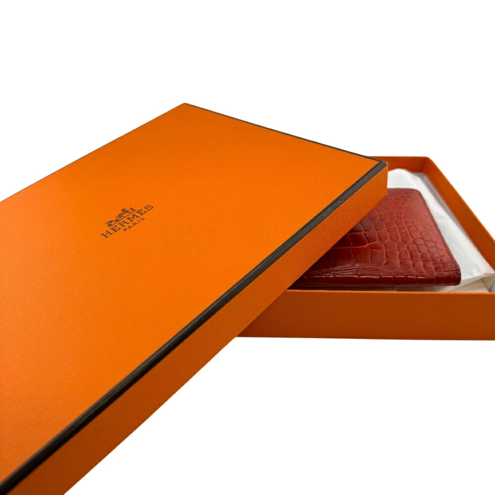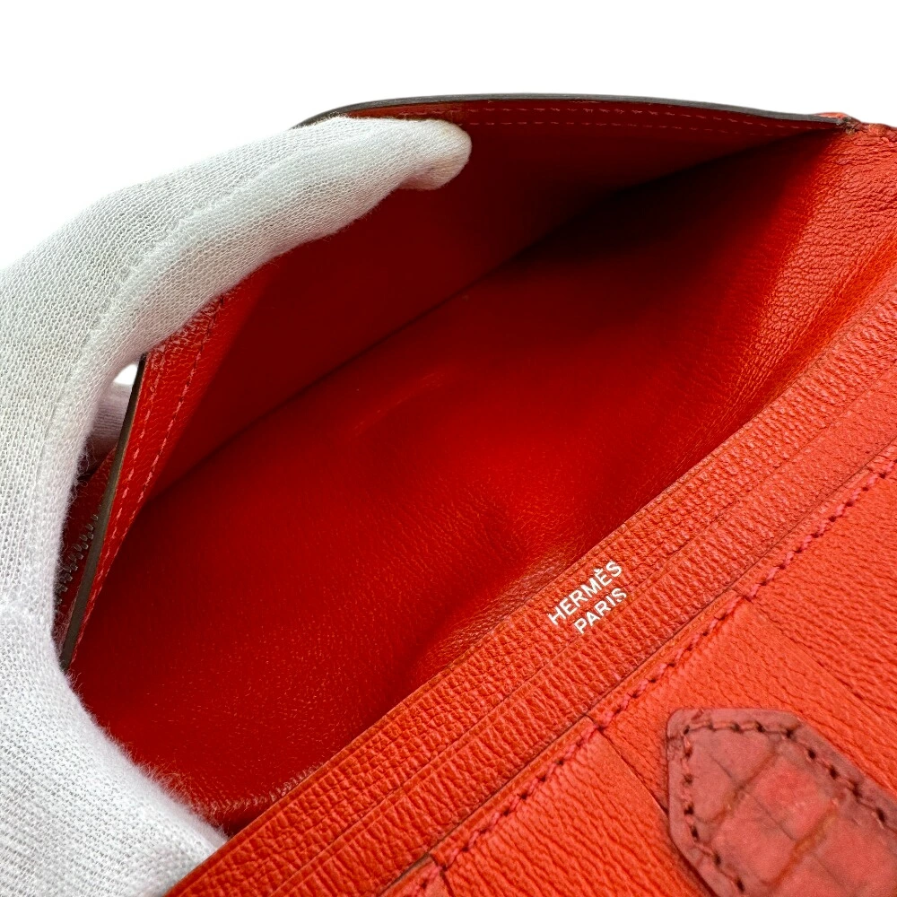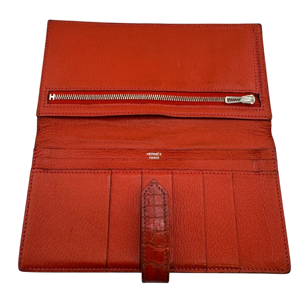[5% Off Coupon Available Now!] HERMES Bearn Souffle Bifold Long Wallet, Brand Name, Card Slots, Coin Purse, Red, Unisex, Recommended, Popular