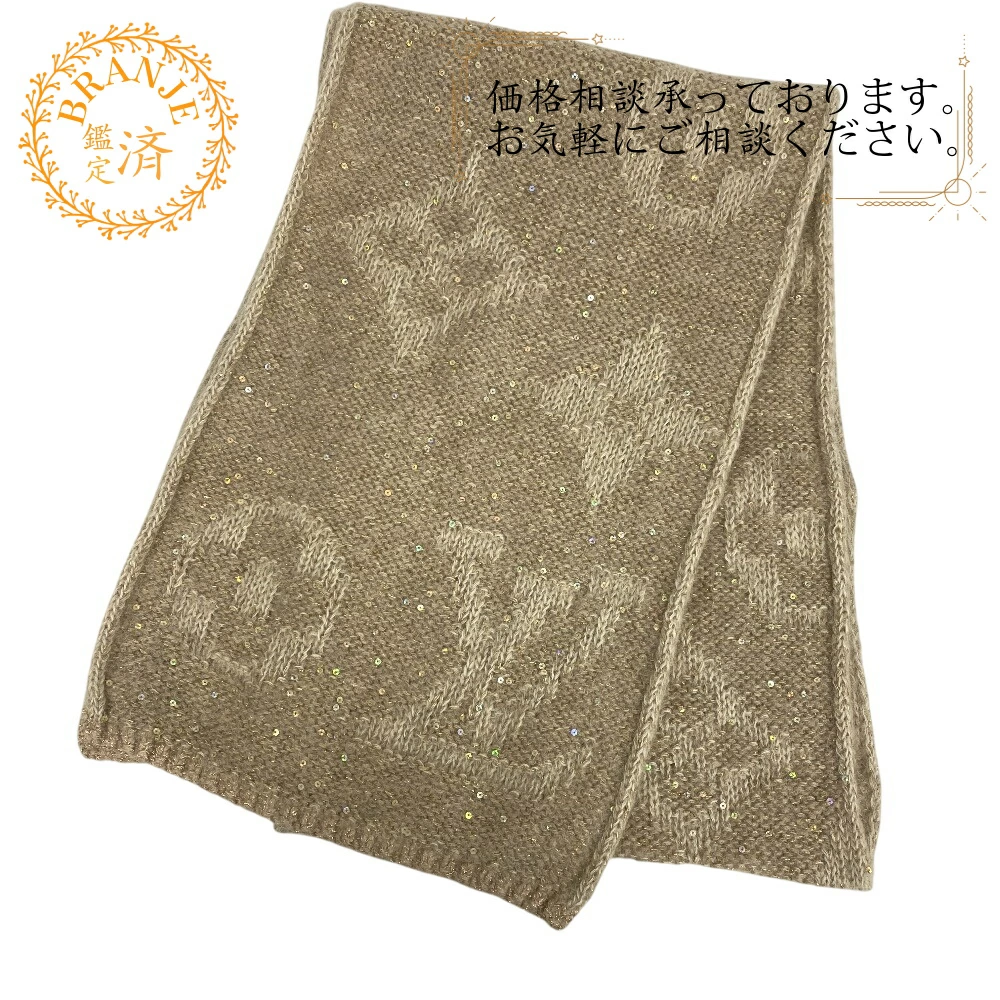 商品名 | LOUIS VUITTON/ルイヴィトン 401910 エシャルプ モノグラム グリッター スパンコール マフラー ベージュ レディース |