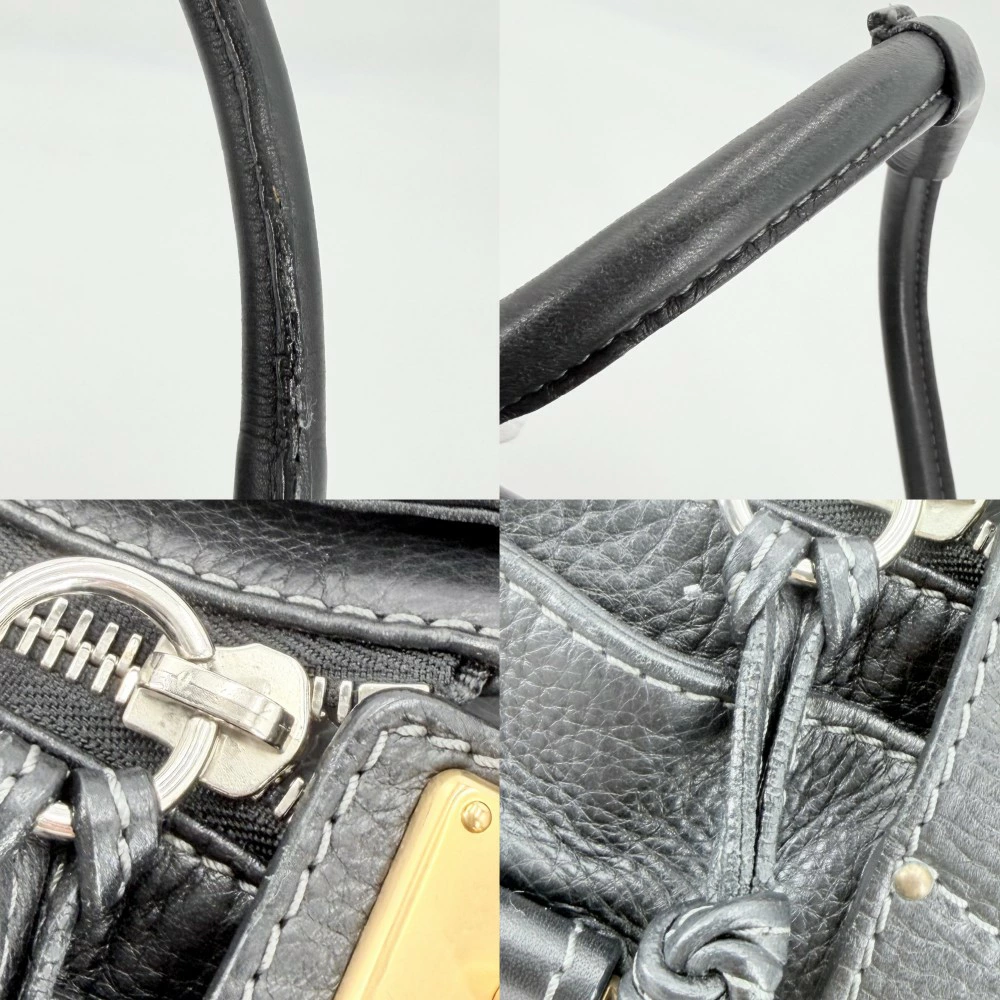 | コメント | ・外側にスレ、シワ、型崩れ ・角にスレ ・持ち手に線傷、シワ、ヨレ ・内側に薄汚れ ・金具に小キズ、スレ、メッキ剥がれ ・ファスナープルレザーにほつれ ・外ポケット底に全体的に接着汚れ ・持ち手含みコバにヒビ ・金具に取り切れない僅かな青サビ |