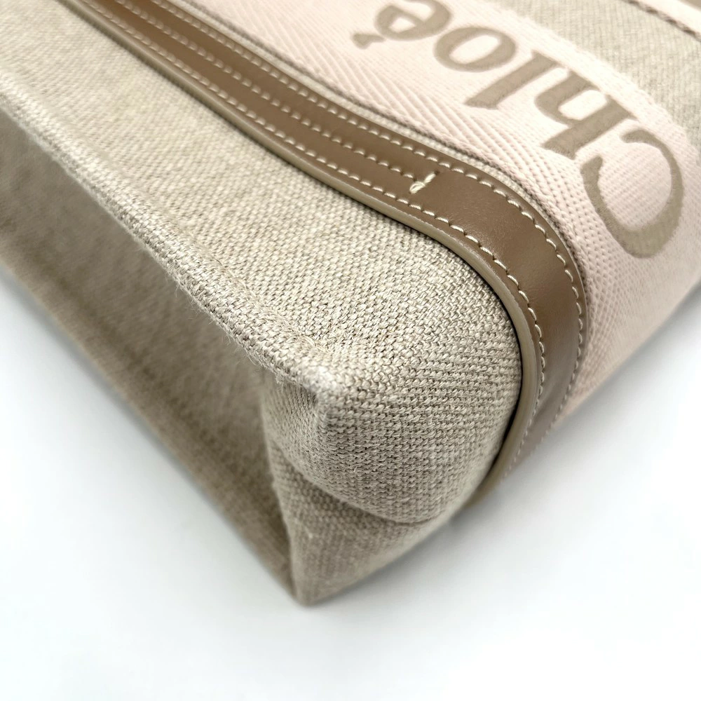 Pre-owned Chloe Women's Woody 2-Way Small Tote Bag (Handbag, Shoulder Bag, Crossbody Bag) - Product Code: CHC23AS397L1726Y - Linen Canvas and Calfskin - Beige, Brown, Gold Hardware - Excellent Condition