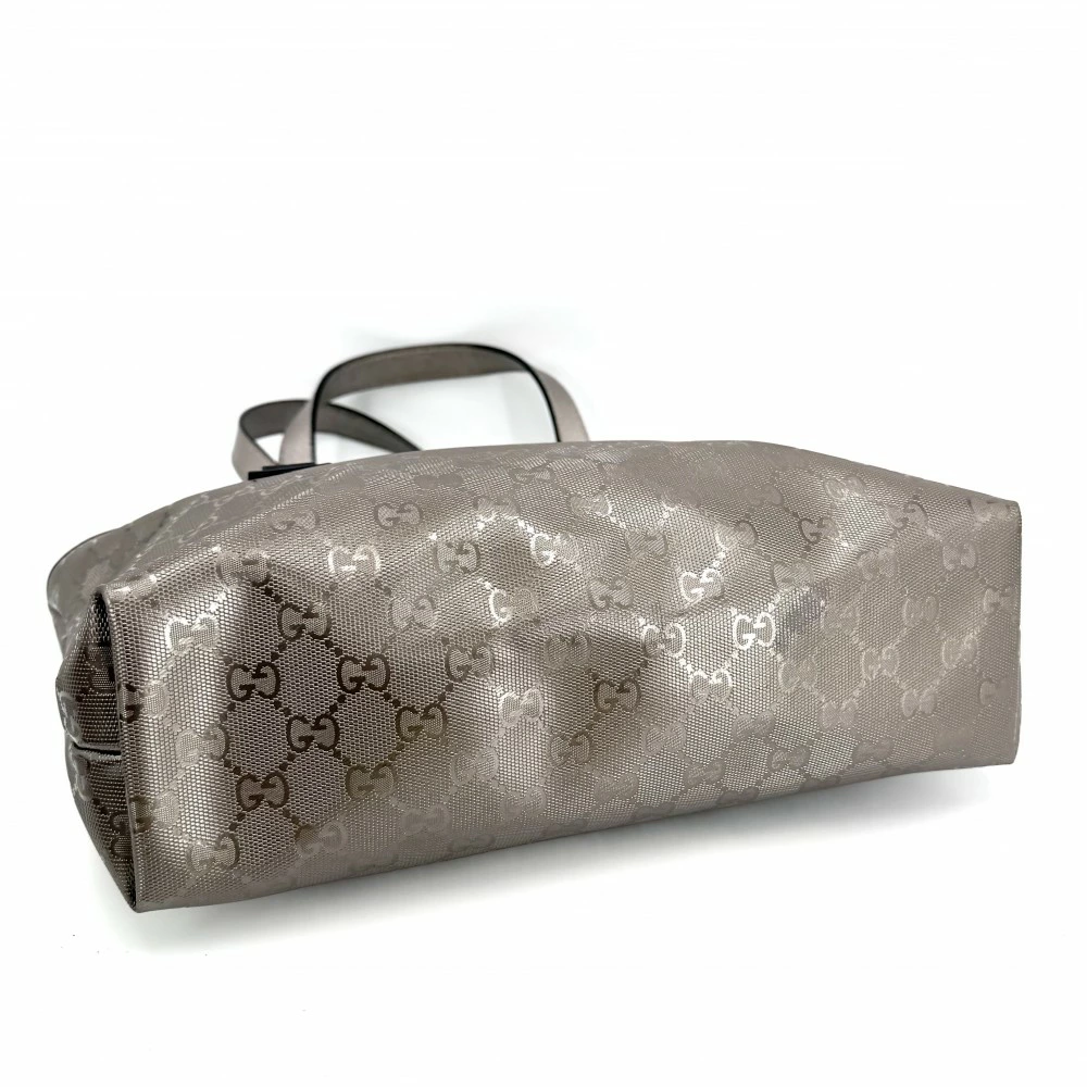 Pre-owned Gucci GG Imprime Tote Bag for Women, All-Over Print, Shoulder Bag, GUCCI 211138, PVC Leather, Metallic Gray, Silver Hardware