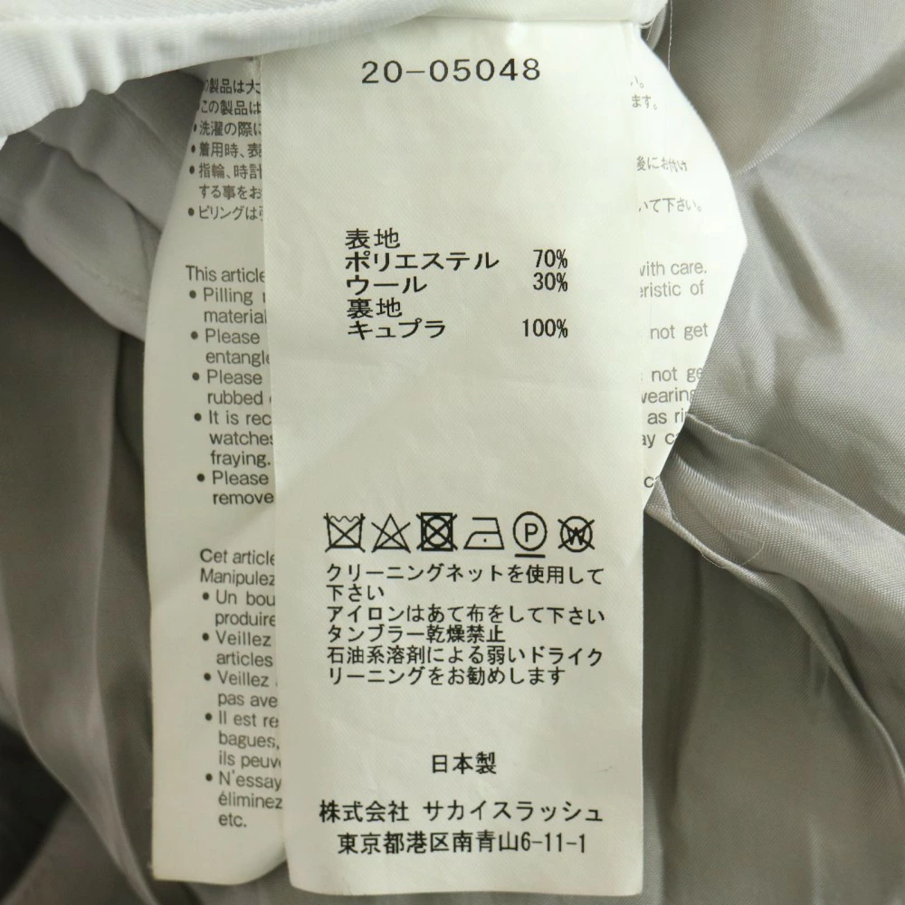 | コメント | ・シワ ・ほつれ ・店頭同時販売のためハンガー跡が付く場合がございます。 ・所々に汚れ ・ホワイトライン部分に取り切れない毛玉、黒ずみ ・裏地に黄ばみ、シミ ・裏地一部破れ |