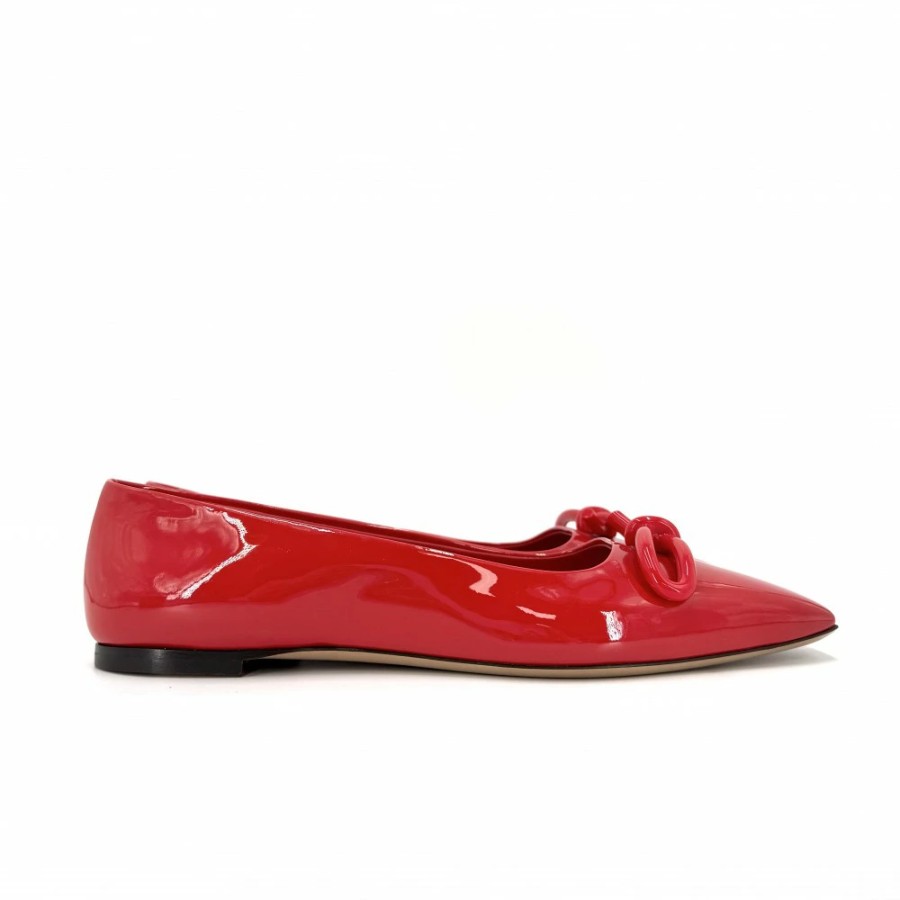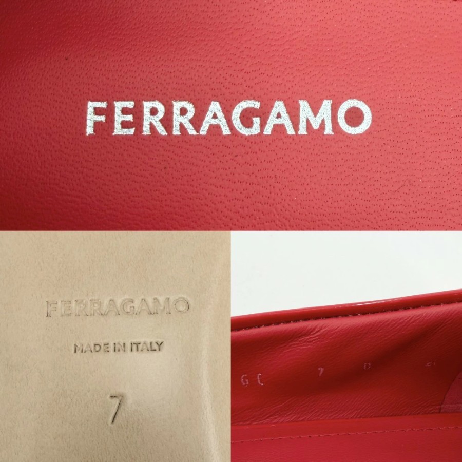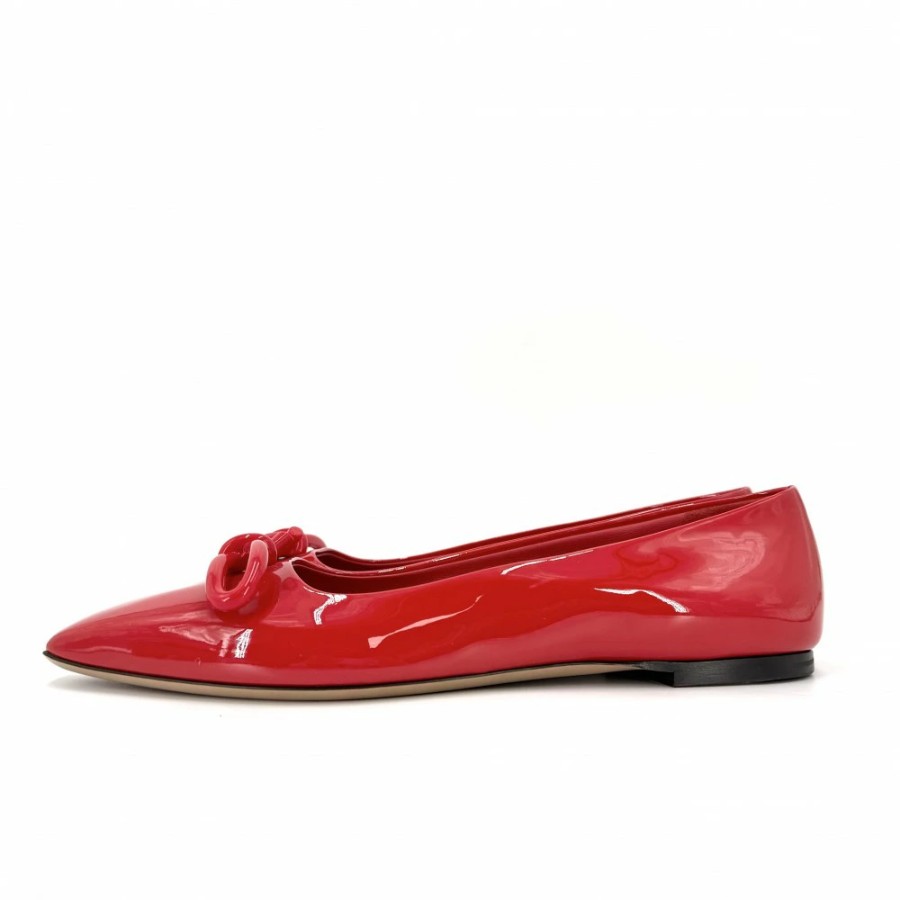 Salvatore Ferragamo women's flat pumps with ribbon detail, size 7 (approx. 24cm), patent leather, red, excellent condition (pre-owned).