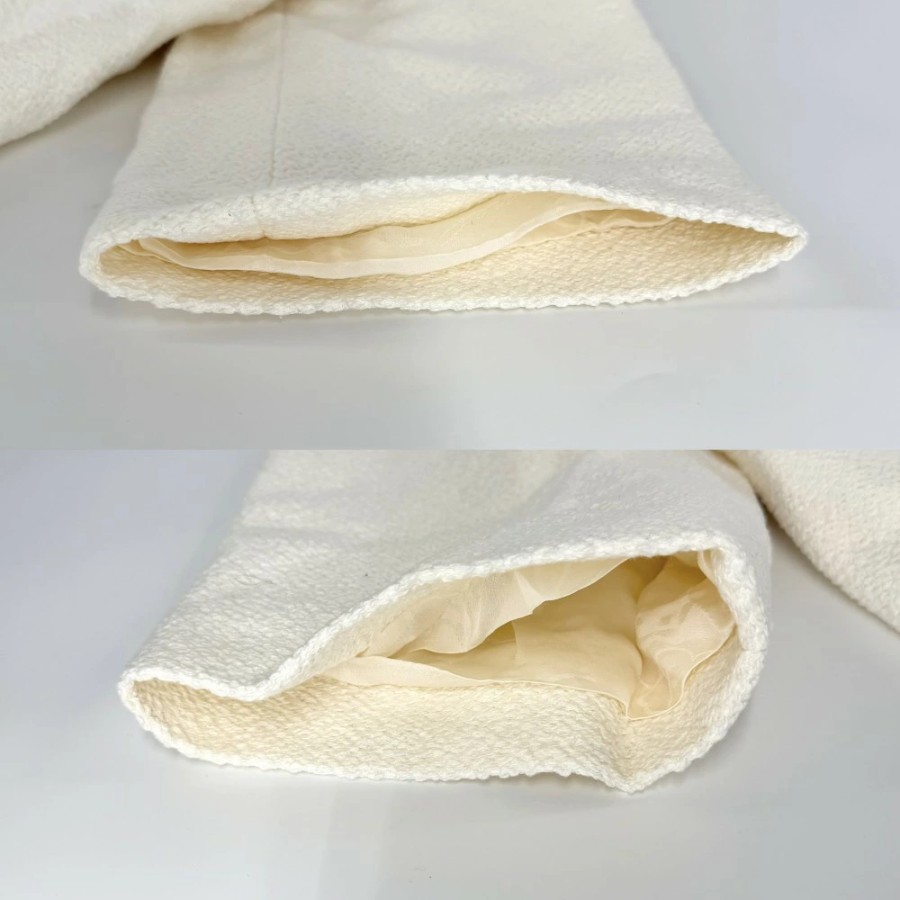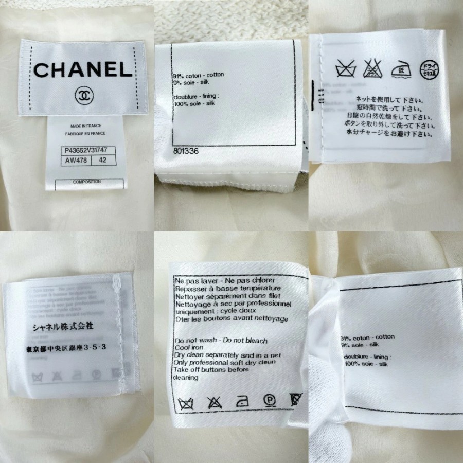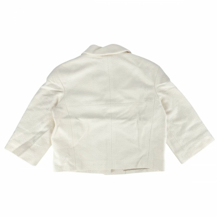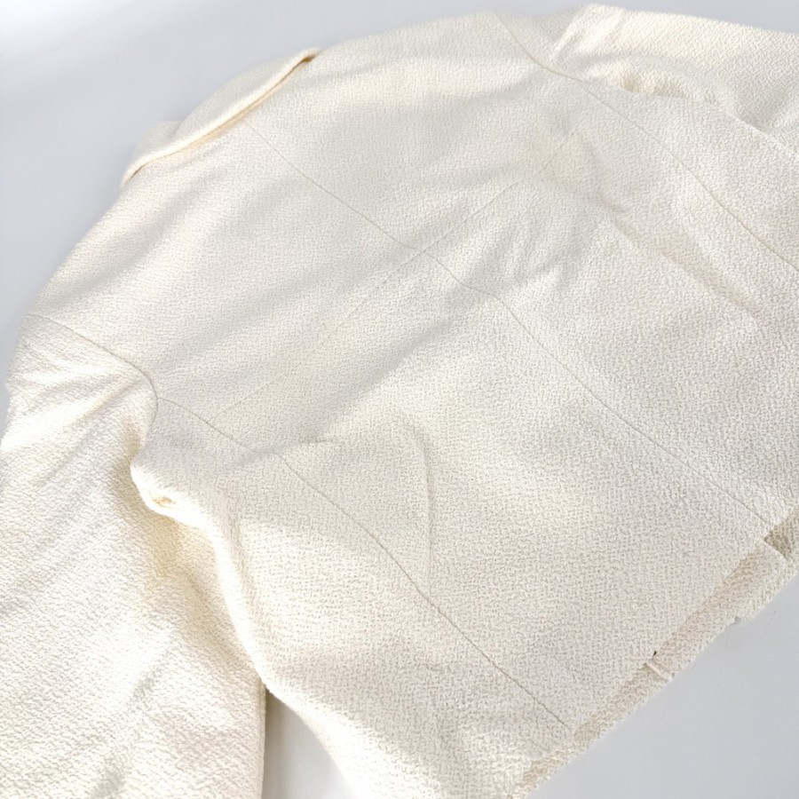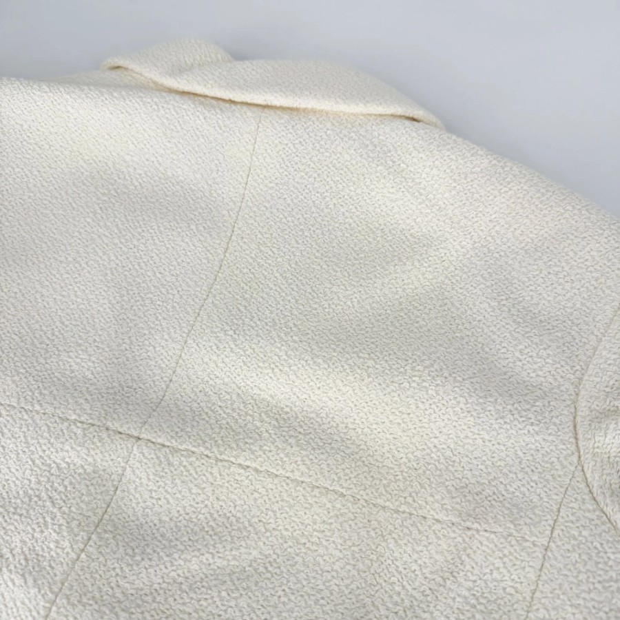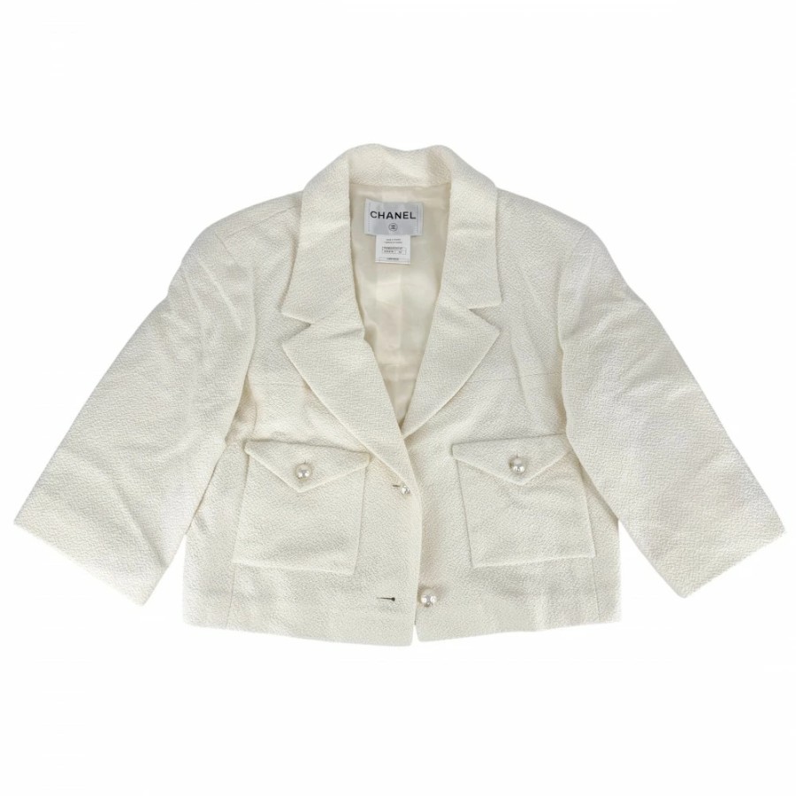 Chanel Women's Outerwear Jacket with Logo Buttons and Pearl Buttons, Size 42, Ivory, Gold Hardware, Cotton/Silk [Pre-owned]