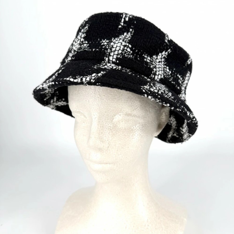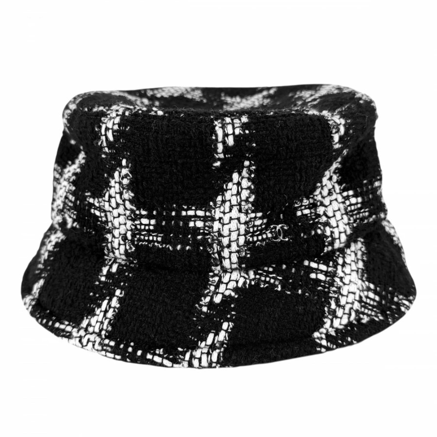 Chanel Women's Tweed Bucket Hat, Fashion Item, Coco Mark, Size M, Black/White, Excellent Condition [Pre-owned]