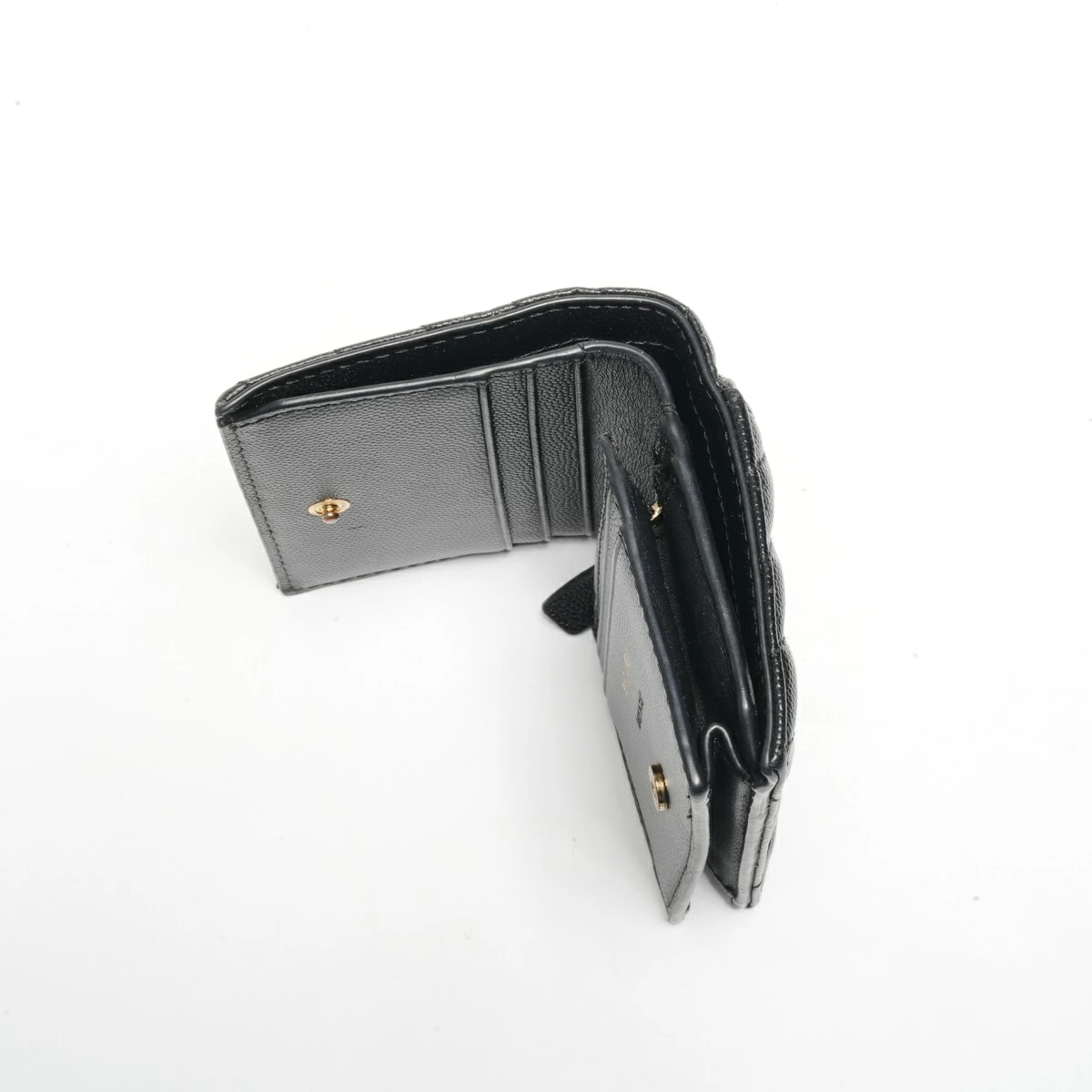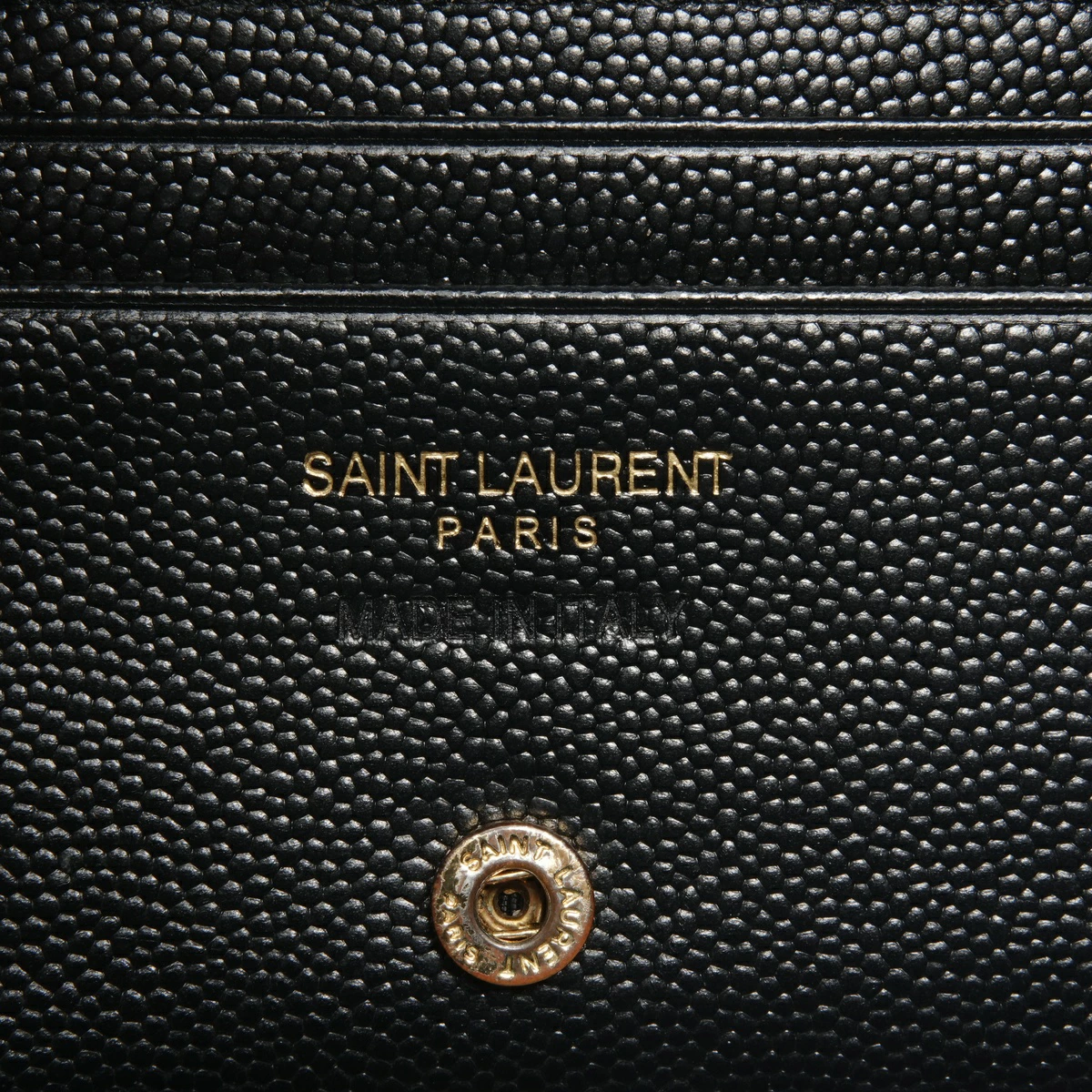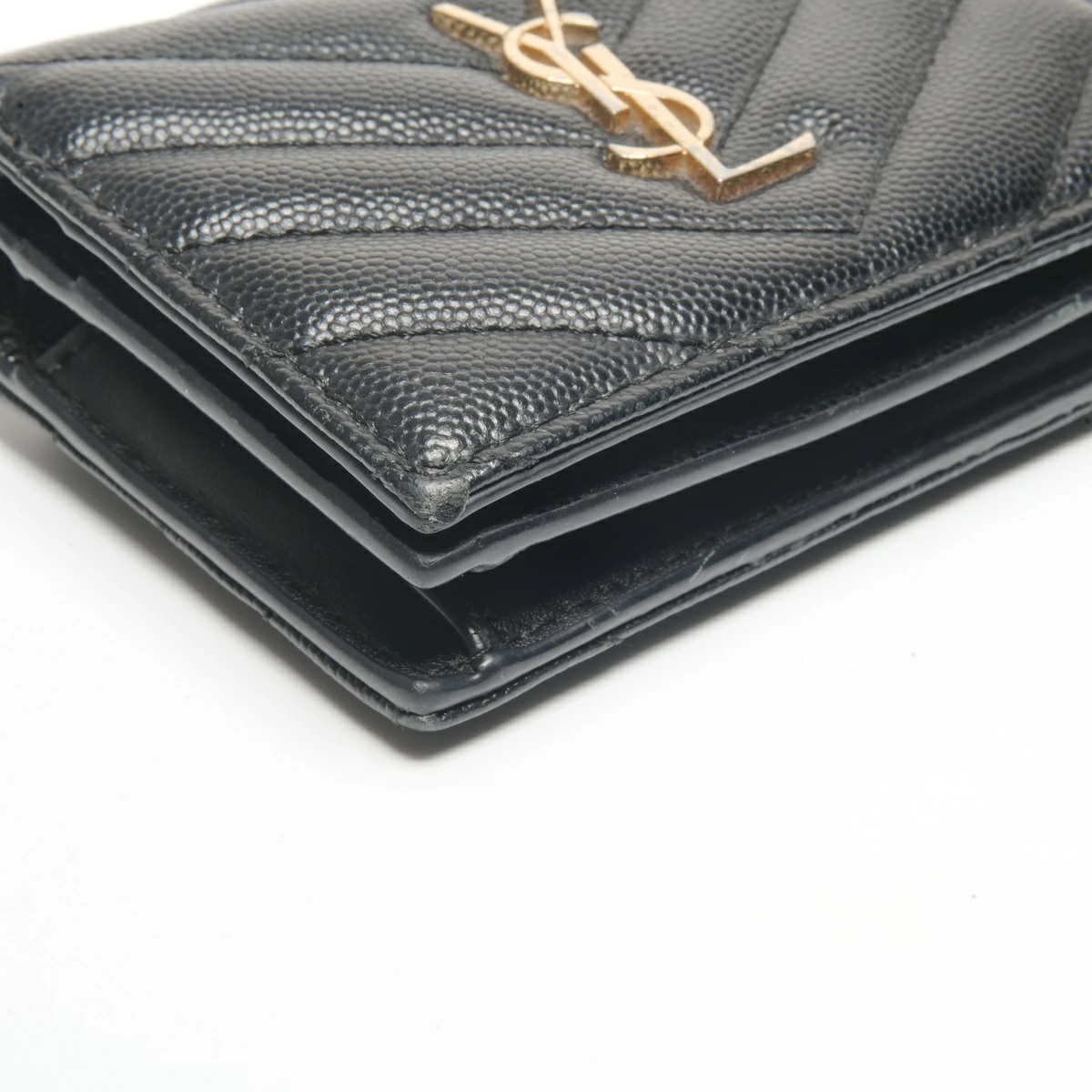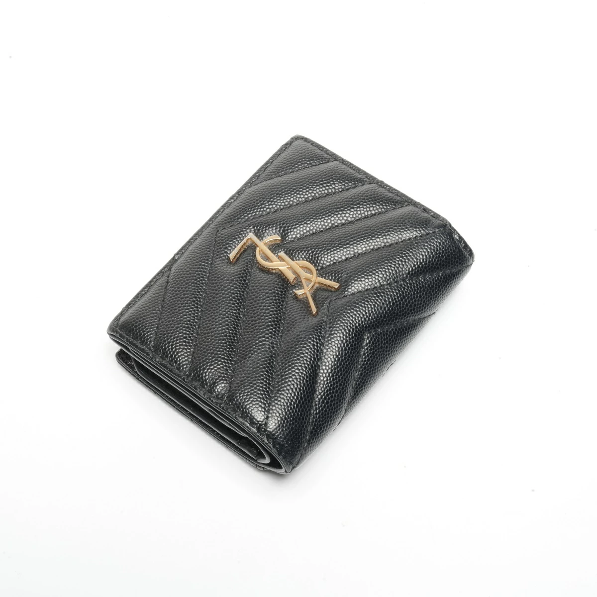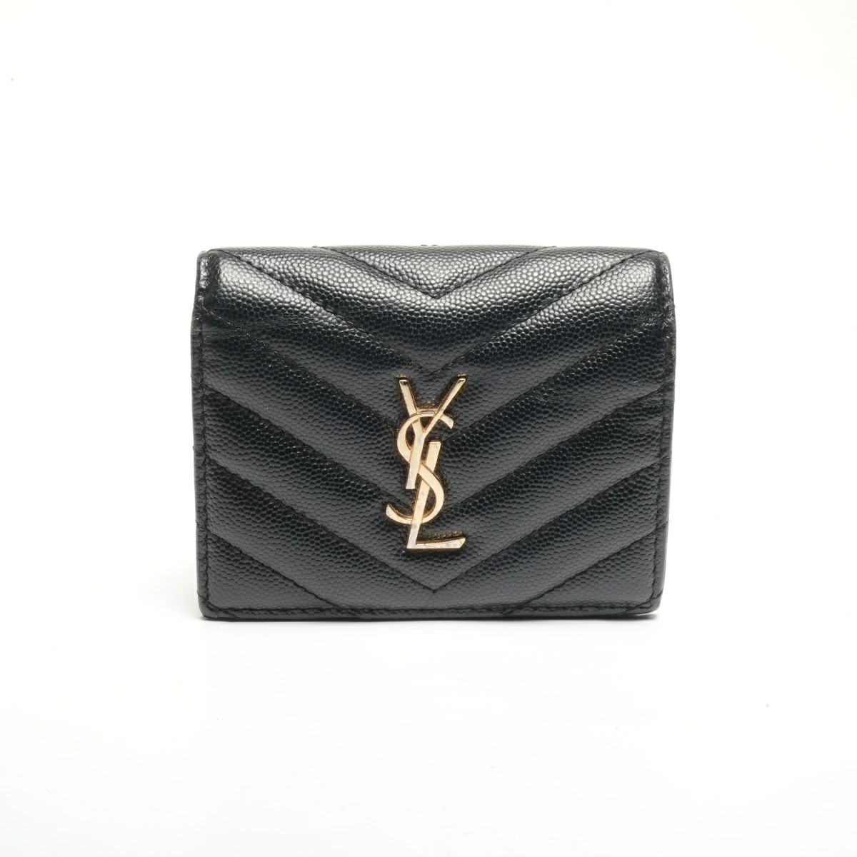 イヴ・サンローラン YVES SAINT LAURENT カサンドラ レザー コンパクト ジップ ウォレット 二つ折り財布 ブラック WS24455 【中古】
