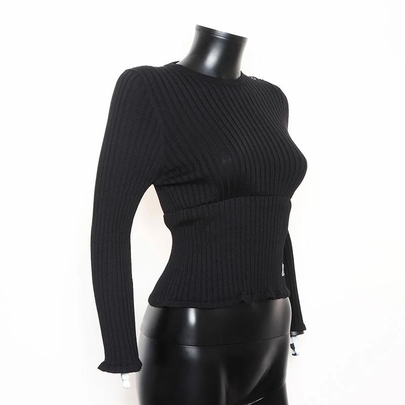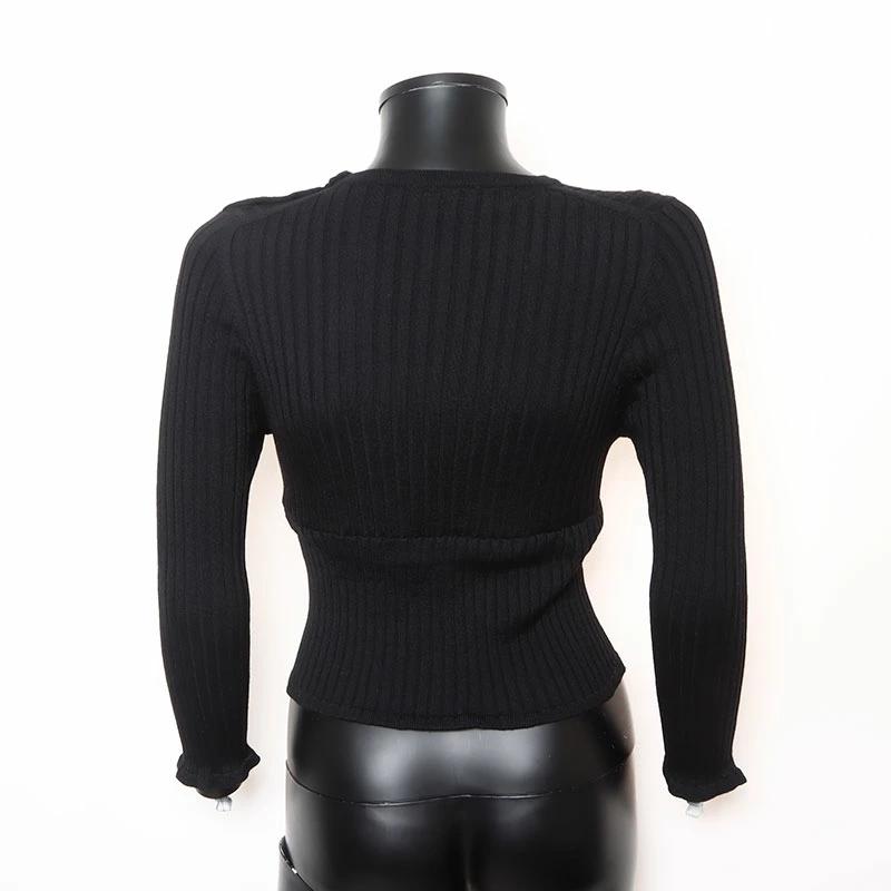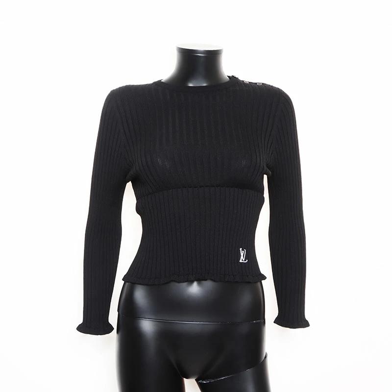 Pre-owned Louis Vuitton logo ruffle wool knit, size M, black, WS15049