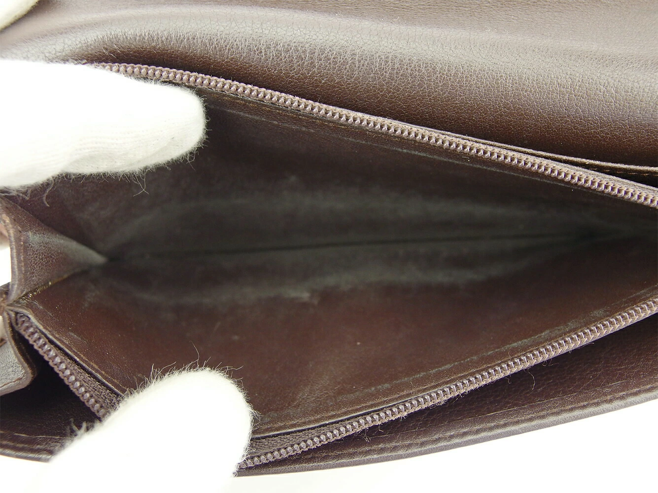 | コンディション | 全体の状態詳細:まだまだ十分にお使いいただけます。 社外リペア跡(スレ色着色)。小銭入れに、スレ(強)&黒ずみあり。その他 スレ&汚れ(札入れ&カード入れ&ポケットもあり) 金具ハゲ コバヒビ割れ(ファスナープル革) 変色(ポケット底部×1) 湿り気小(カード入れ) 表面ヒビ割れ小(上角) 小傷(内側) などの使用感があります。 |