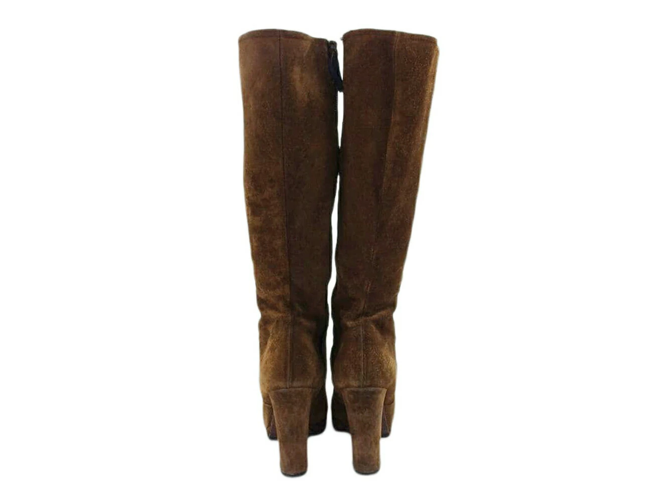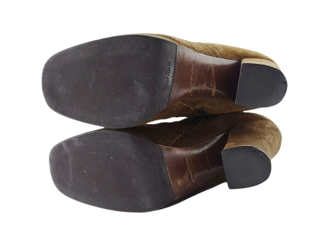 [Super Sale: Up to 50% Off] Miu Miu Boots, Long Boots #39, Chunky Heel, Brown, Women's, Pre-owned, High-End Brand, Vintage