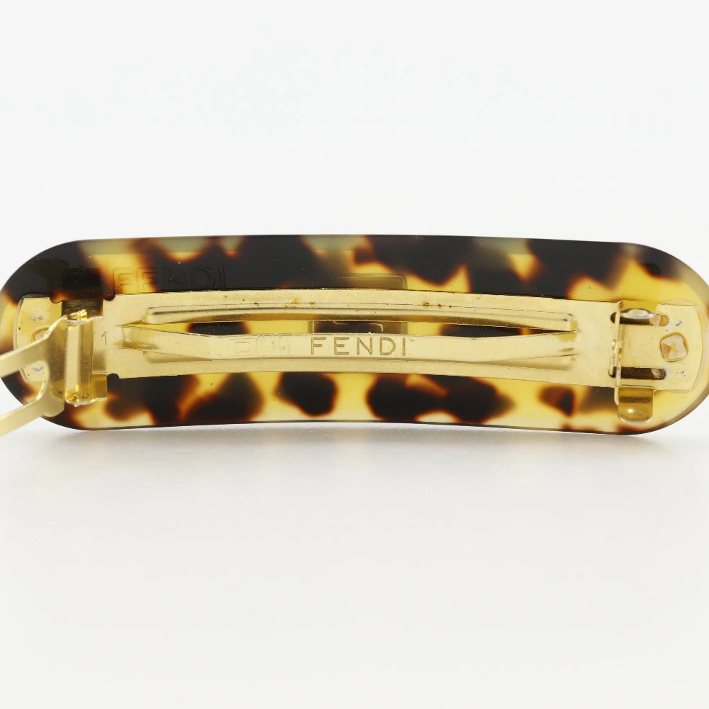 [Super Sale 10% Off] Fendi FFLOGO Barrette, Leopard Print, Synthetic Resin, Gold, Women's [Pre-owned]