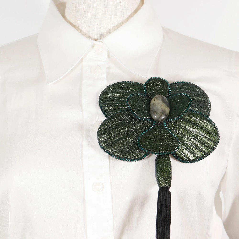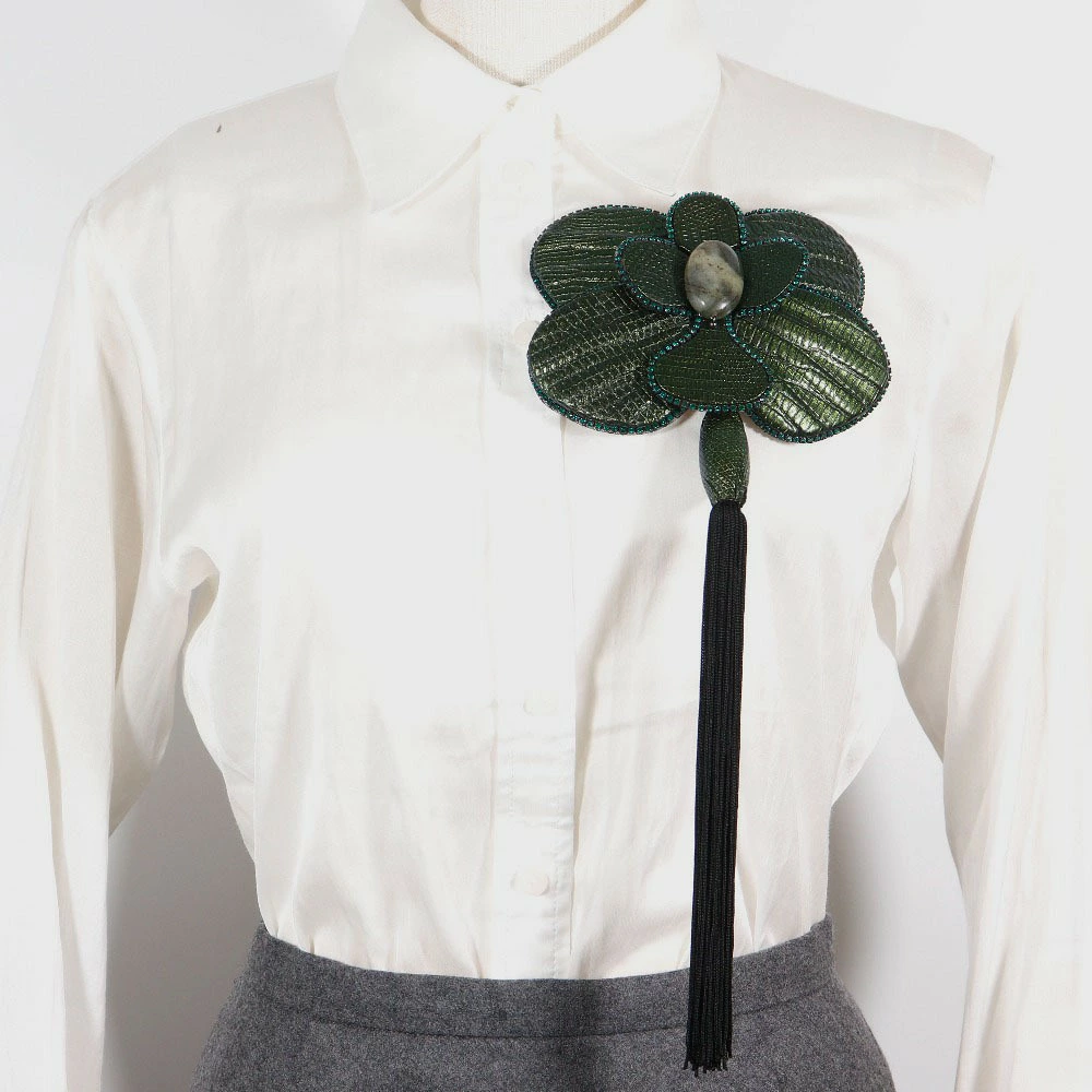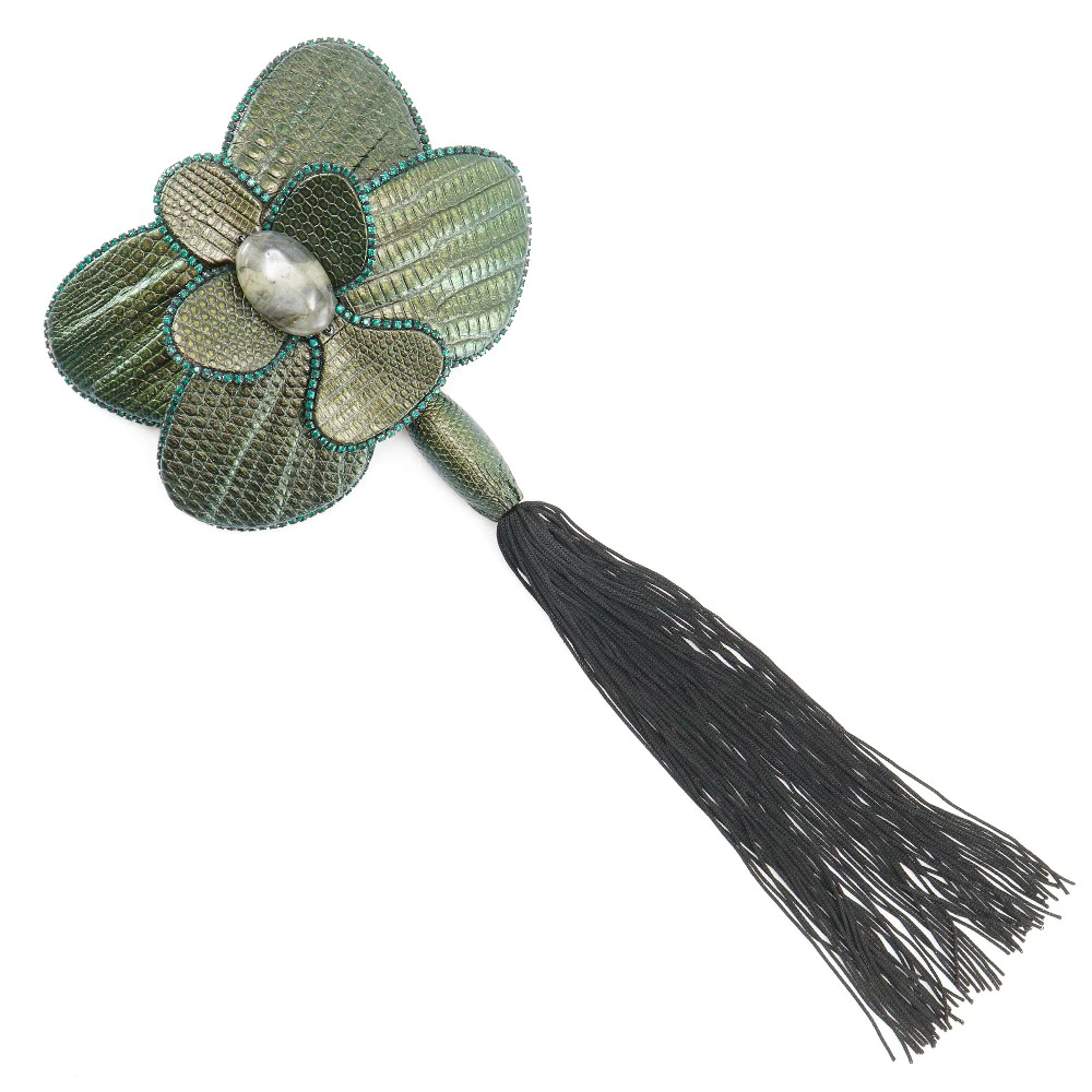 [Super Sale 10% Off] Long Tassel Brooch, Green, Approx. 93g, Women's [Pre-owned]