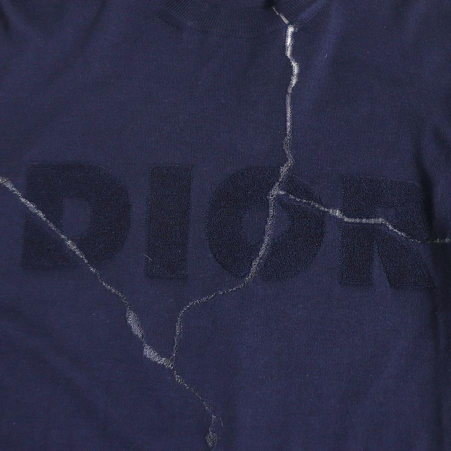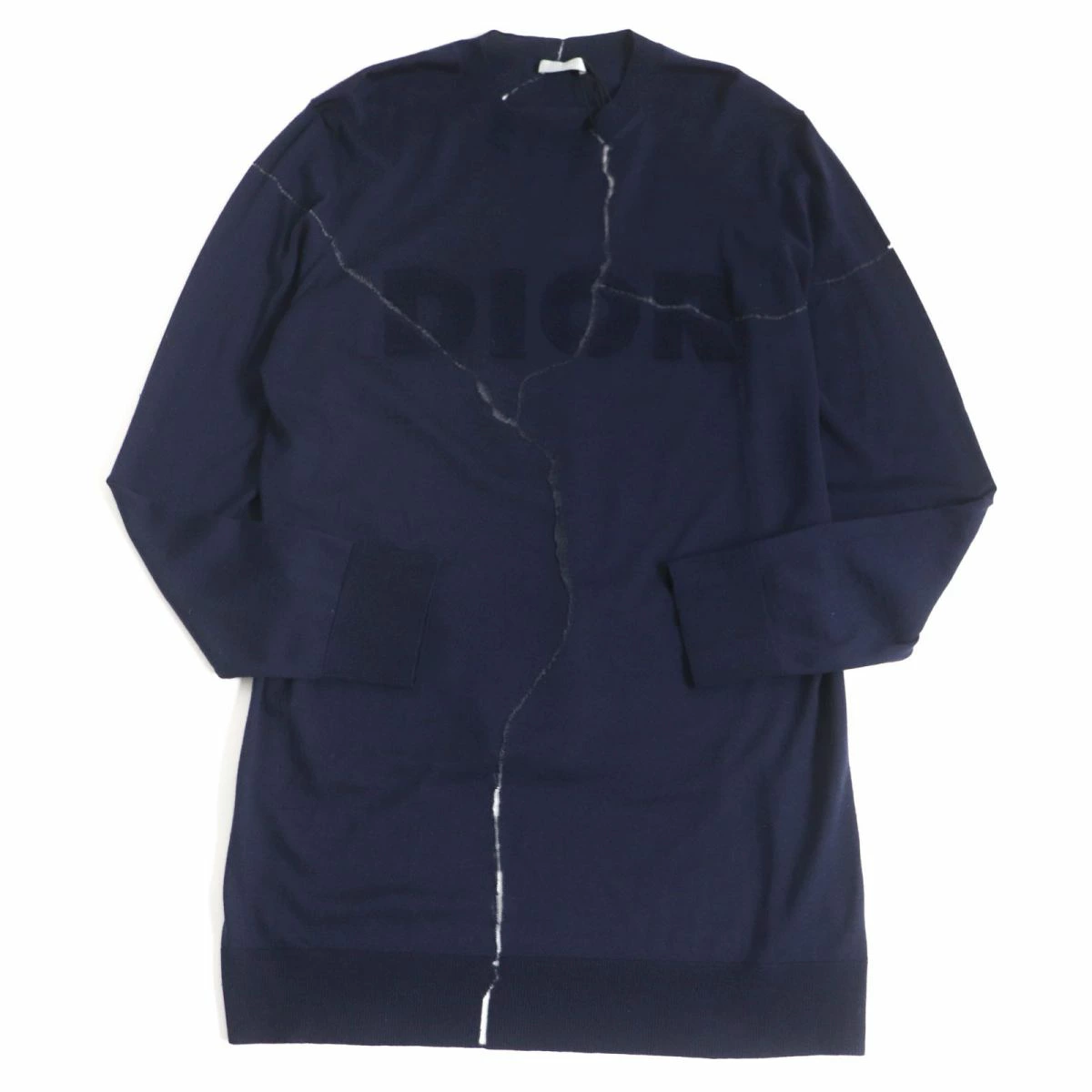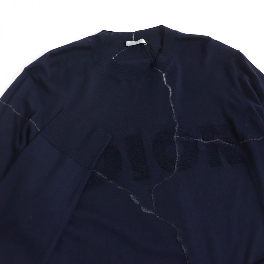 [Constant Review] Unused 2020 DIOR Homme x Daniel Arsham Crack Embroidery Logo Knit Sweater, Navy Blue, Size L [Pre-owned]
