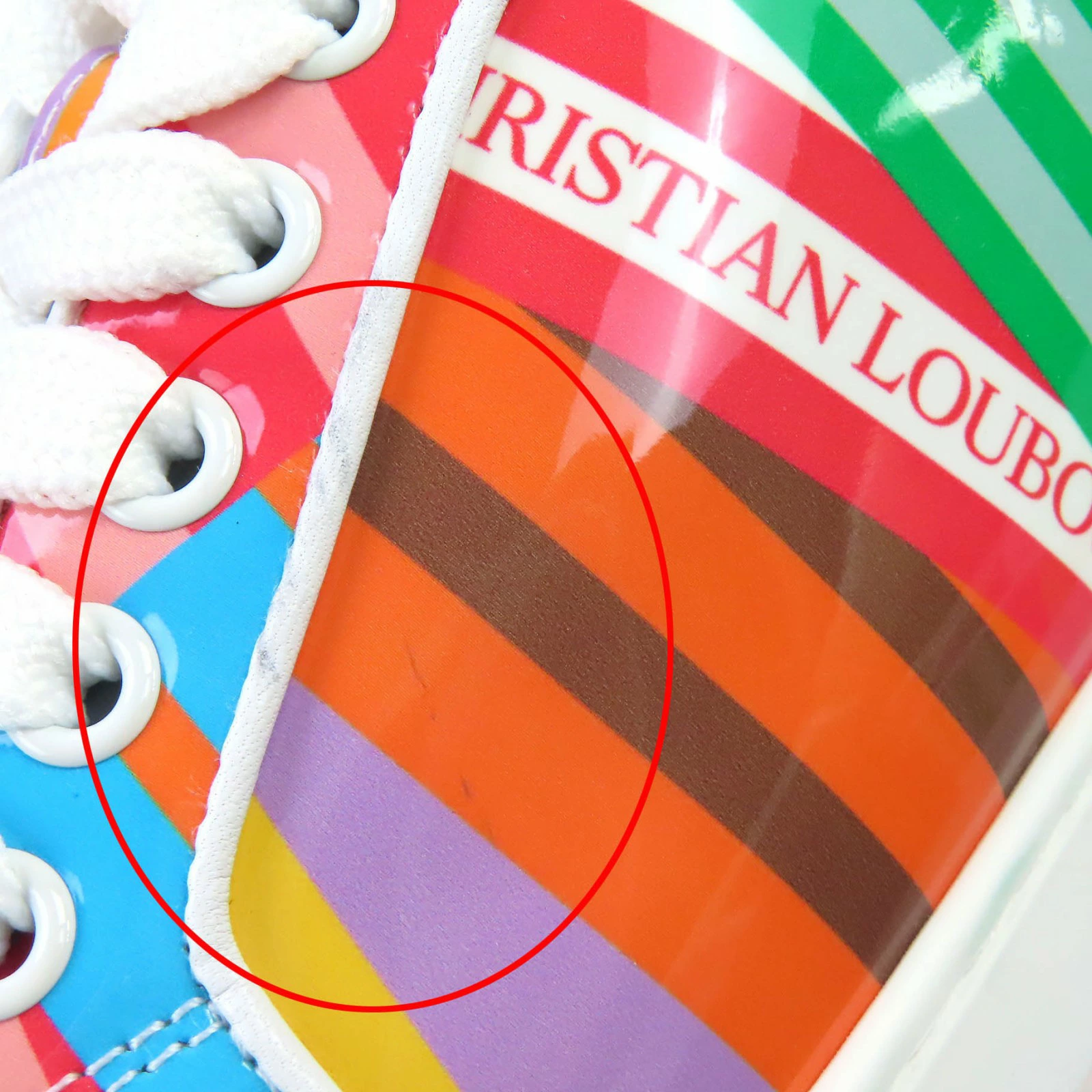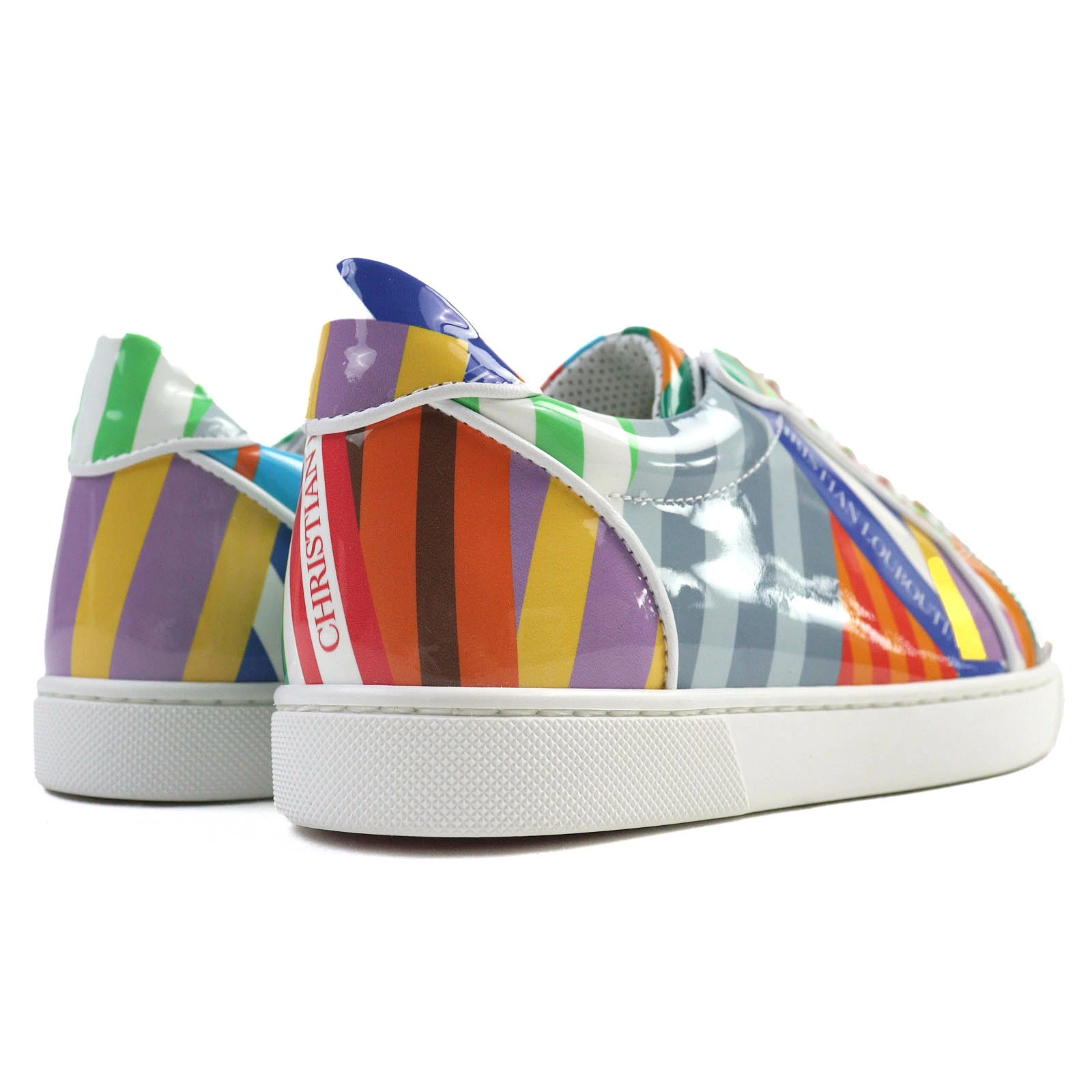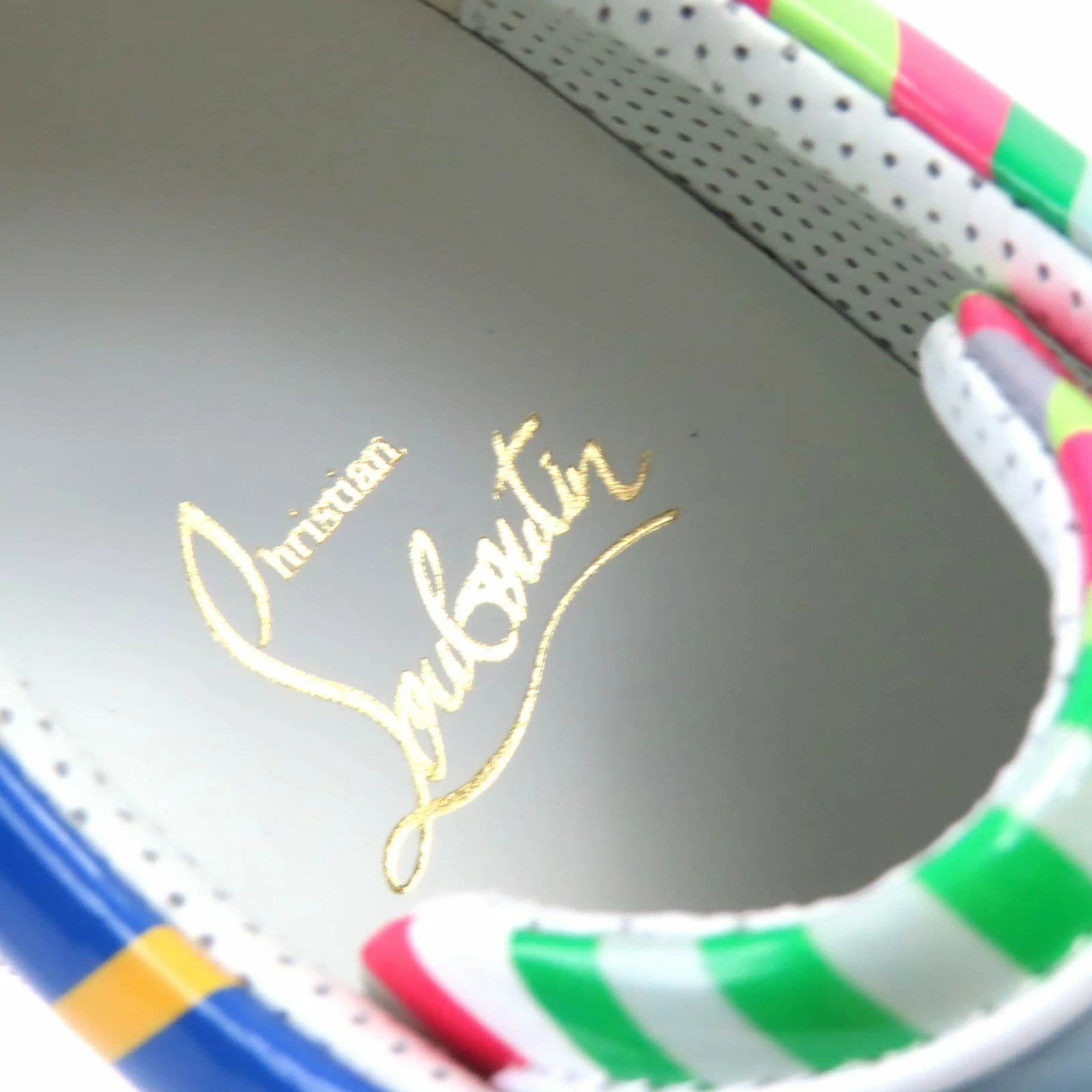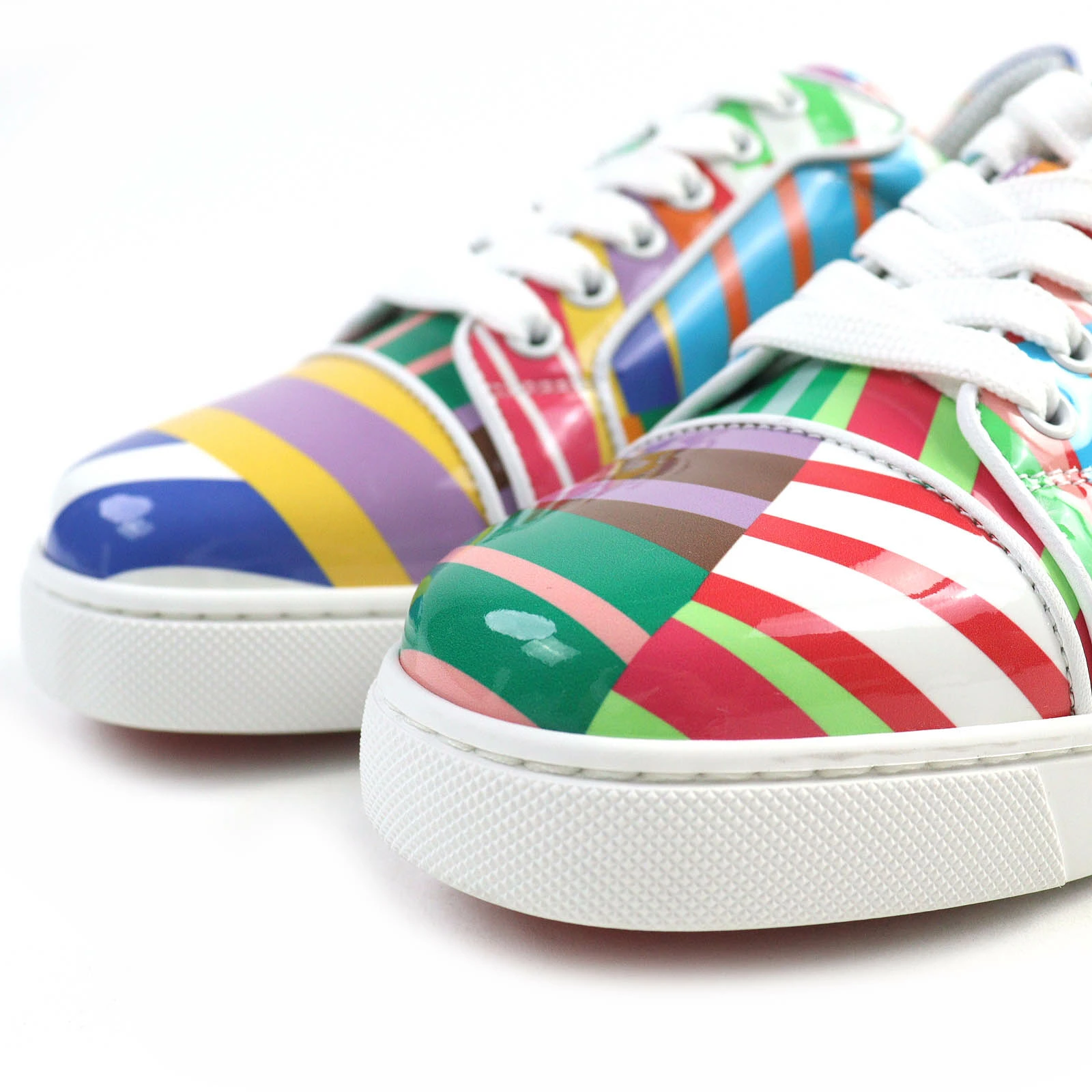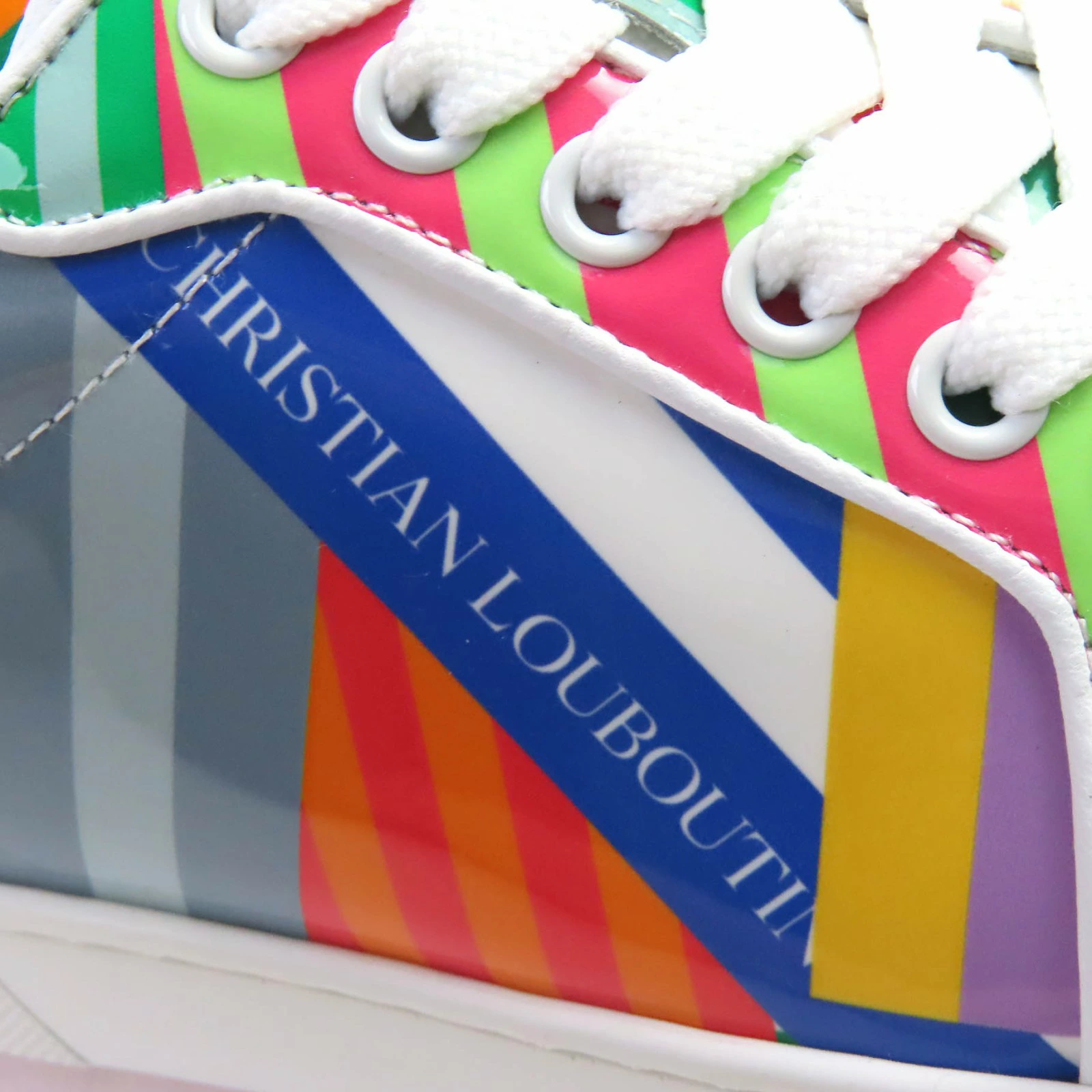 [Constant Review] Unused Christian Louboutin Patent Leather Logo Multi-Stripe Low-Top Sneakers, Multicolor, Size 36.5, Made in Italy, Women's [Pre-owned]