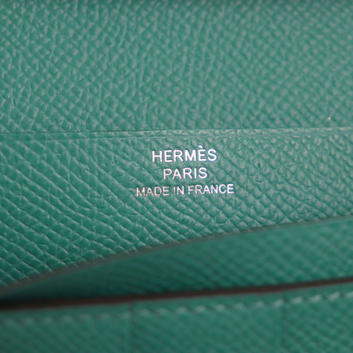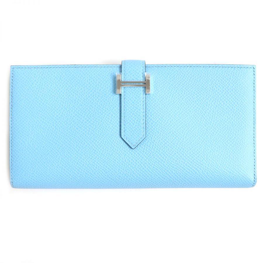 [Constant Review] Unused ▼ HERMES Bearn Soufflet Leather Bi-fold Long Wallet in Celeste and Vert Jade, Silver Hardware, B Stamp, Box Included [Pre-owned]