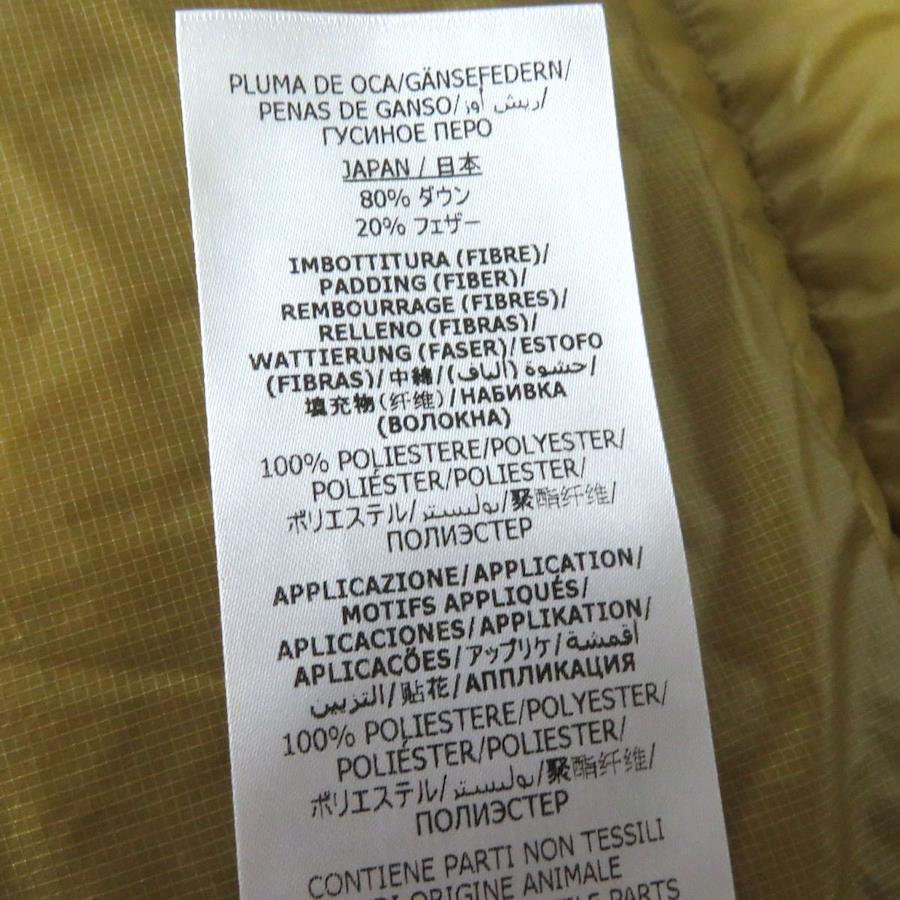 | 素材 (material) | 表地:ナイロン88% :ポリウレタン12% 裏地:ナイロン100% 中綿:ダウン80% :フェザー20% 一部:ポリエステル 100% | ||||||||||||||||