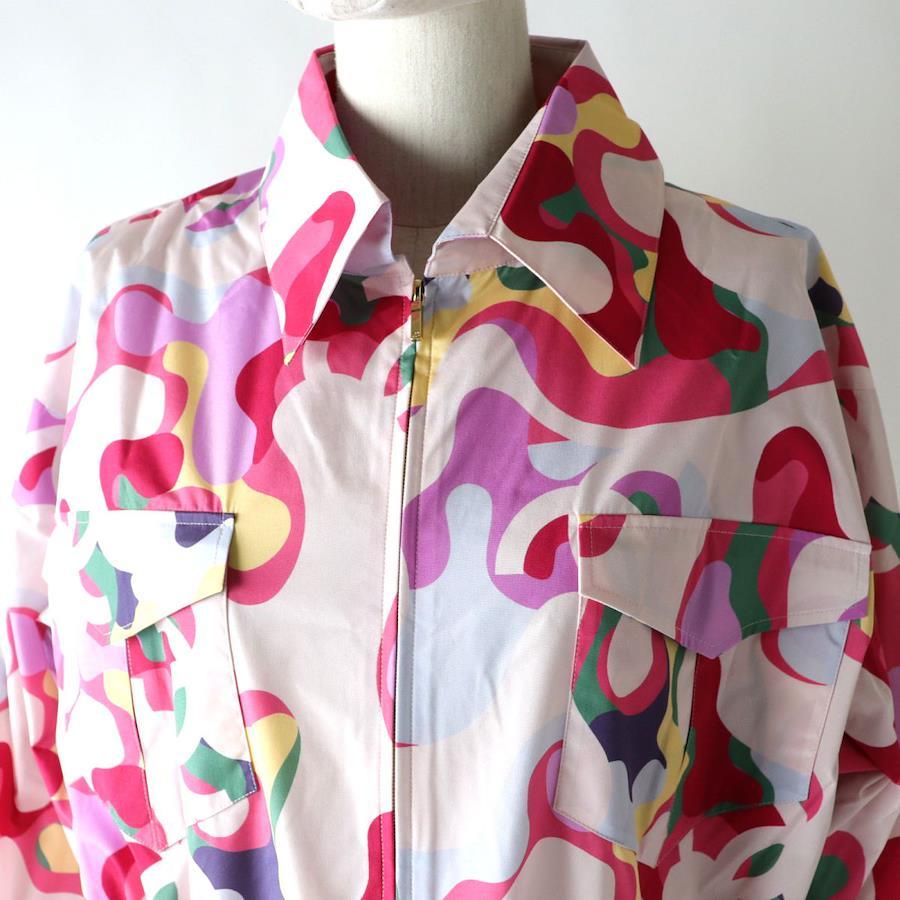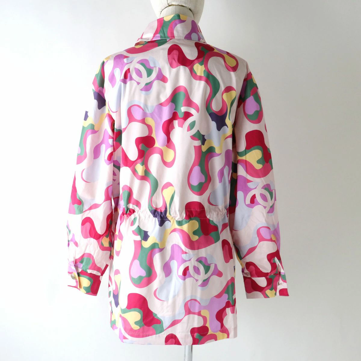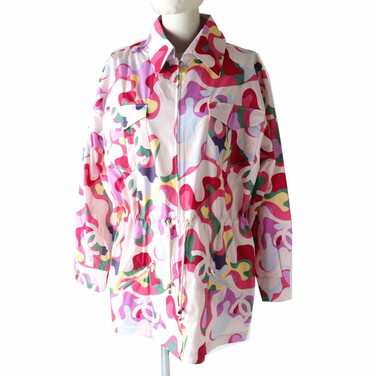 [Constant Review] Excellent Condition ◎ Authentic Italian-Made CHANEL 21P P70193 Women's 100% Silk Zip-Up Jacket/Hoodie with Coco Print, Multicolor, Size 34 [Pre-owned]