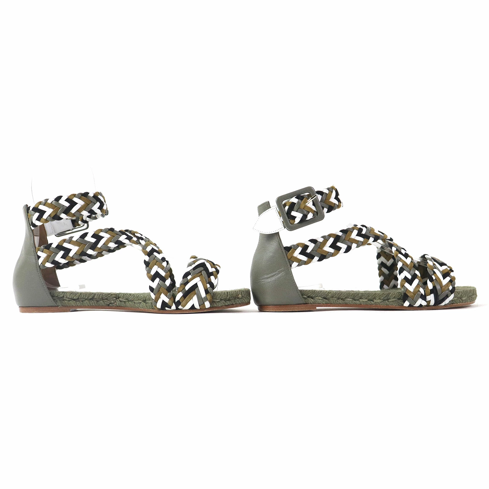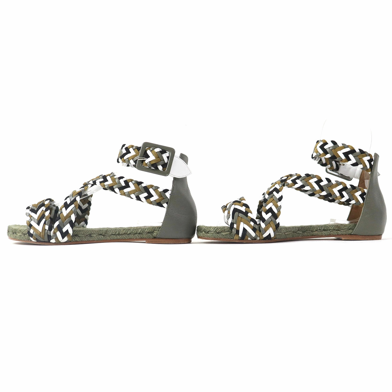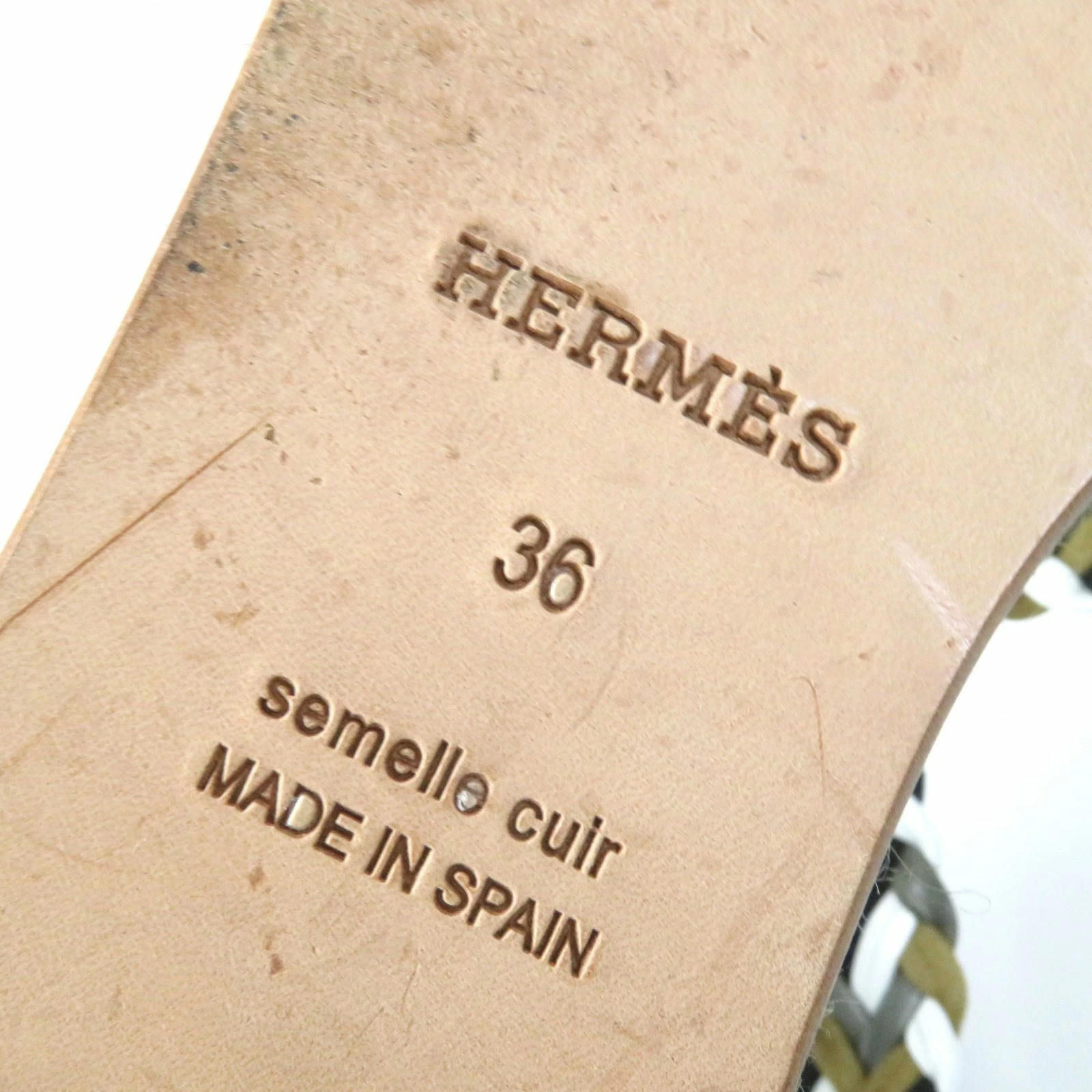 Excellent condition: HERMES mesh design flat sandals with ankle straps, khaki, size 36, made in Spain, box and dust bag included. Pre-owned.