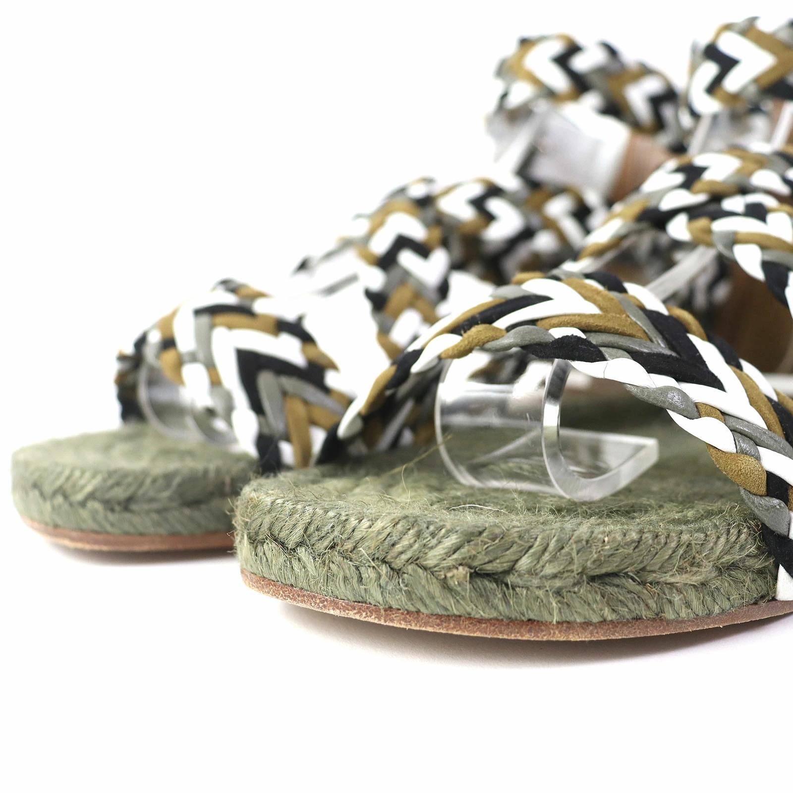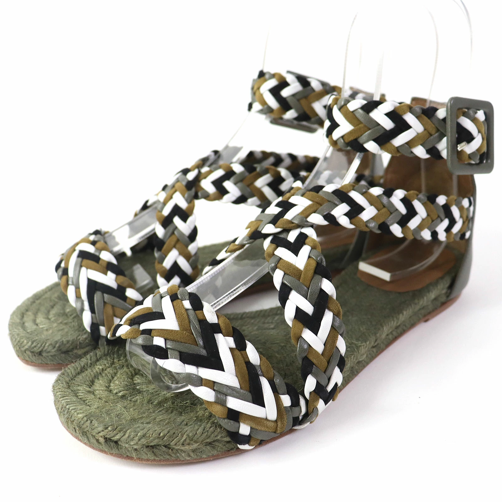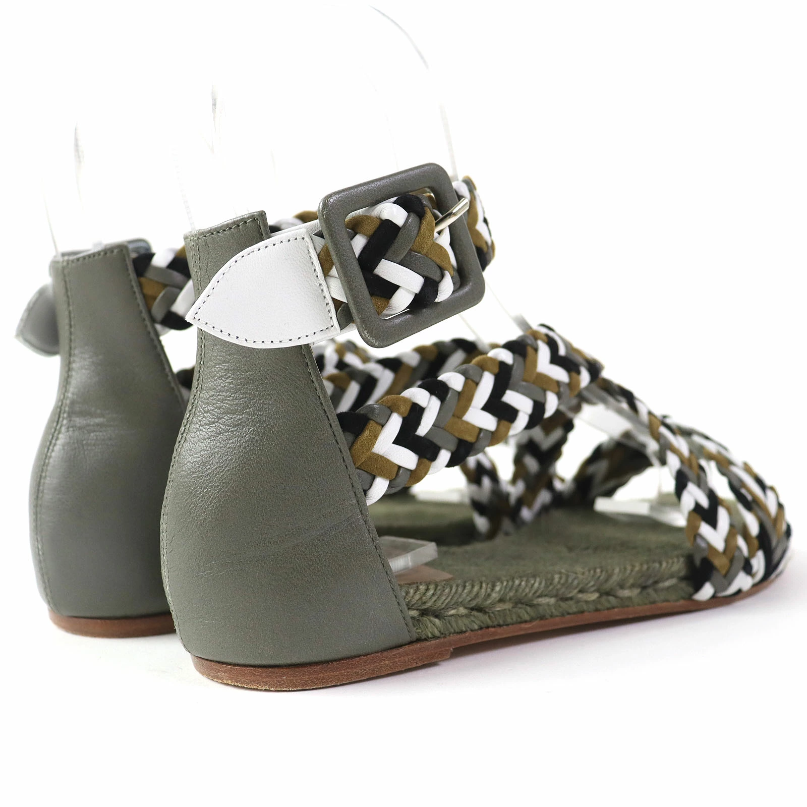 Excellent condition: HERMES mesh design flat sandals with ankle straps, khaki, size 36, made in Spain, box and dust bag included. Pre-owned.