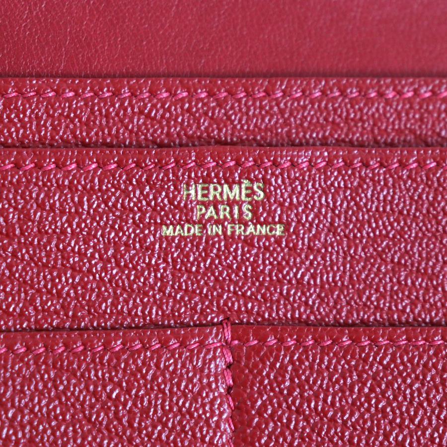 [Constant Review] Excellent Condition ▼ HERMES Dogon GM Sellier Button Chevre Mysore Leather Wallet/Bi-Fold Long Wallet with Rouge vif Gold Hardware, Made in France, G Stamp, Box Included [Pre-owned]
