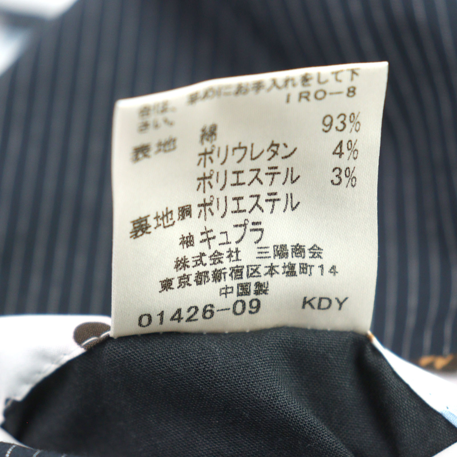 | 素材 (material) | 表地:コットン93% :ポリウレタン4% :ポリエステル3% 裏地:ポリエステル 袖裏地:キュプラ | ||||||||||||||||