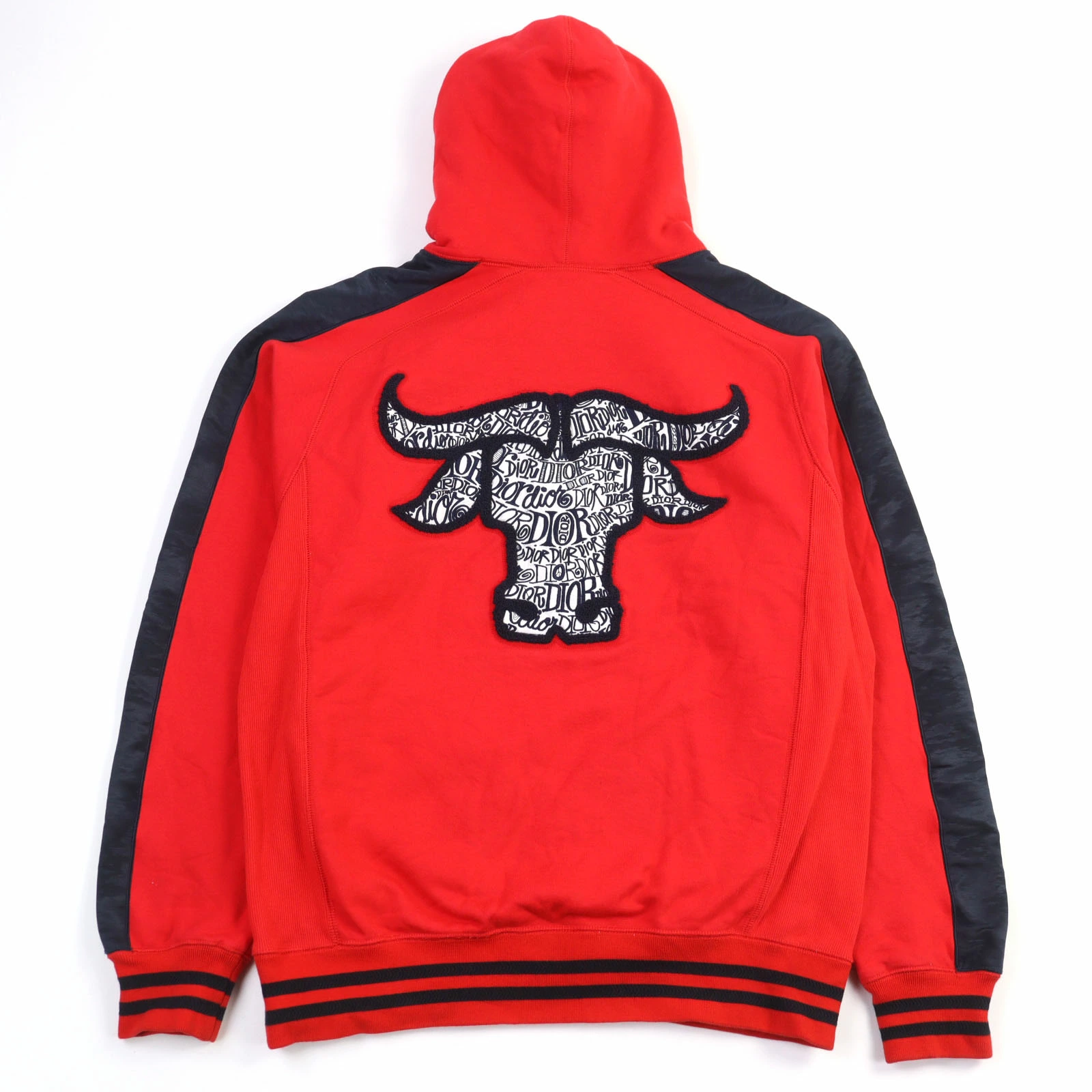 [Constant Review] Excellent Condition DIOR SHAWN STUSSY Dior Homme Shawn Stussy 183J653A0531 100% Cotton STUSSY CHICAGO BULLS Chicago Bulls Logo Embroidered Pullover Hoodie Red Size M Made in Italy Authentic Men's [Pre-owned]