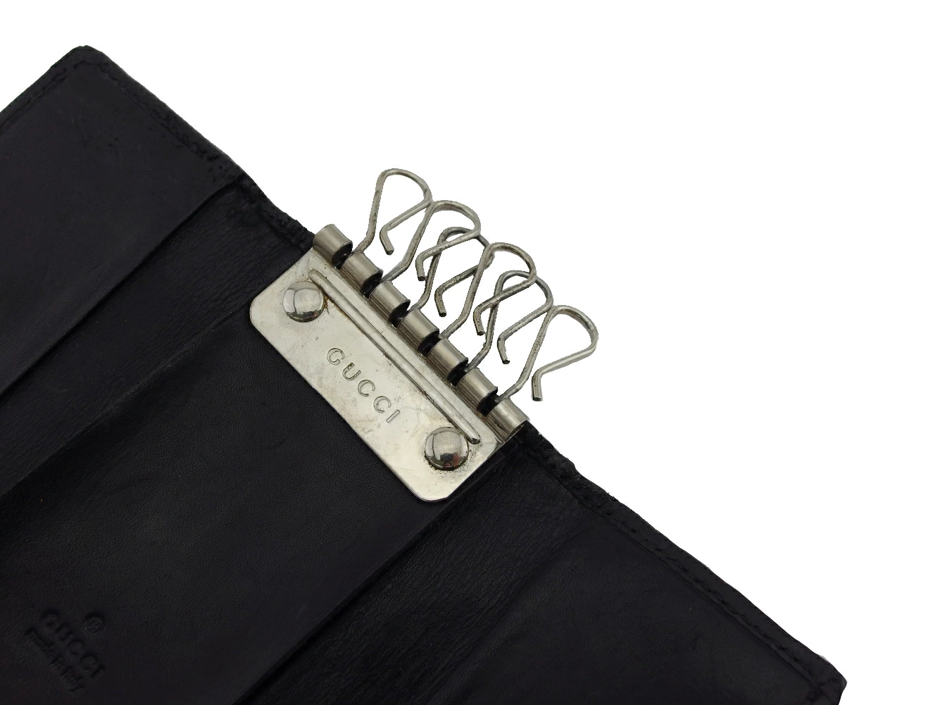 [24% OFF Coupon] Gucci Key Case with GG Pattern, Black and Silver, Women's, Pre-owned, GUCCI