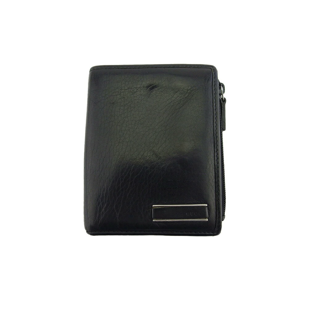 [24% OFF Coupon] Gucci Bi-fold Wallet with Logo Plate, Black and Silver, Women's, Pre-owned, GUCCI
