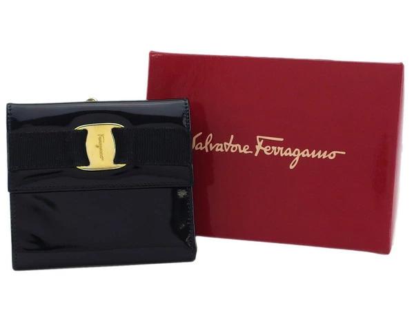 [24% OFF Coupon] Salvatore Ferragamo Bifold Wallet with Vara Hardware in Black and Gold, Pre-owned, Women's