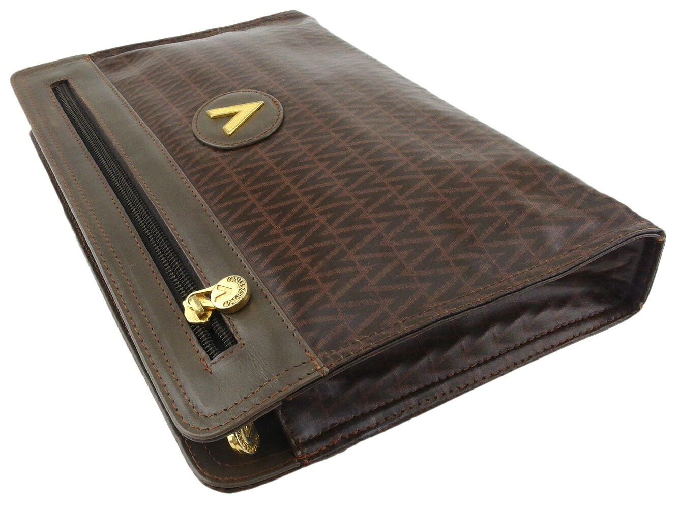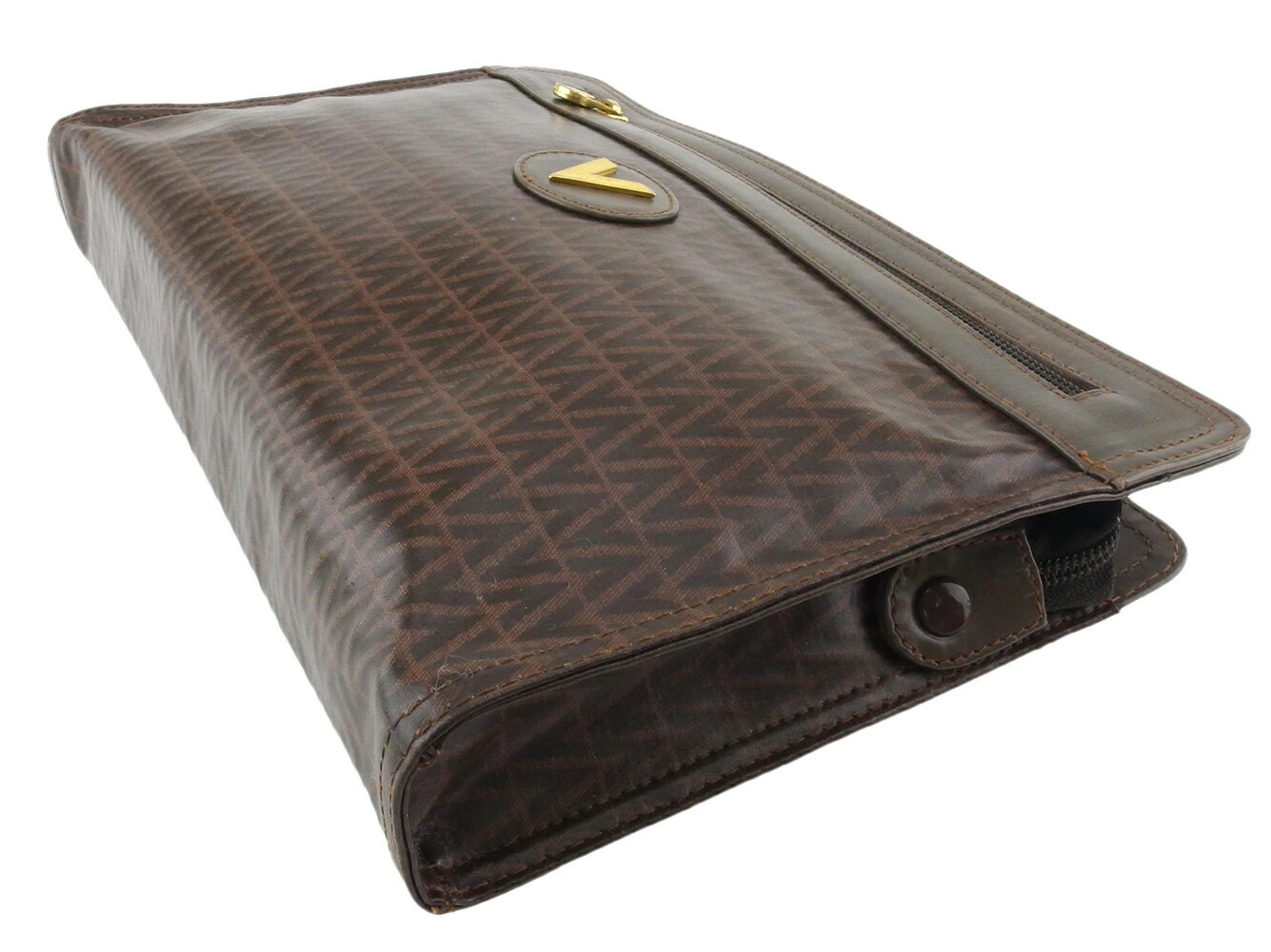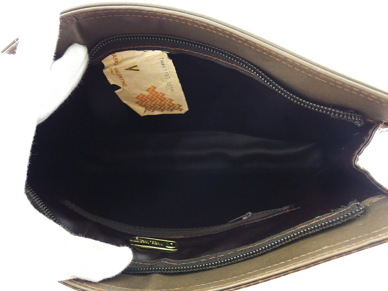 [24% OFF Coupon] Mario Valentino Clutch Bag, V Mark, Brown and Gold, Women's, Pre-owned