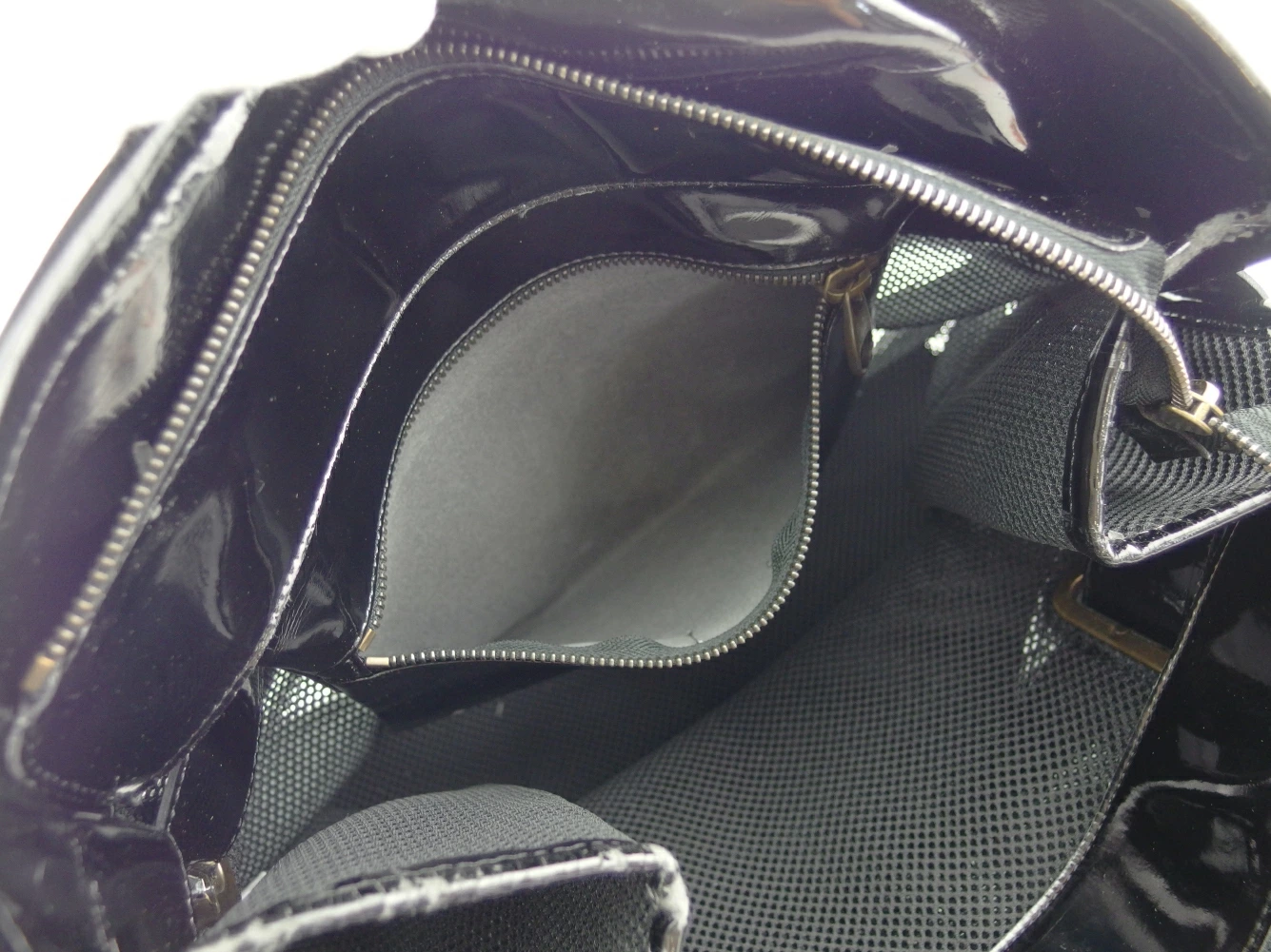 | コンディション | 全体の状態詳細:エナメル部分にダメージがございますが、まだまだご使用いただけます。外側:エナメルレザー(底部やパイピング・装飾パーツにビビ割れ&ハガレ、傷、スレ、汚れ)、持ち手(エナメルのヒビ割れ、傷)あり。内側:ファスナーポケット(傷、汚れ)あり。その他中古品のため、目立たない 傷 汚れ などの一般的使用感があります。 |