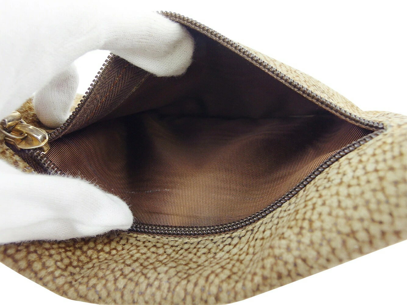 [24% OFF Coupon] BORBONESE Pouch with Quail Print and Redwall Tag, Brown, Beige, Gold, Women's, Pre-Owned