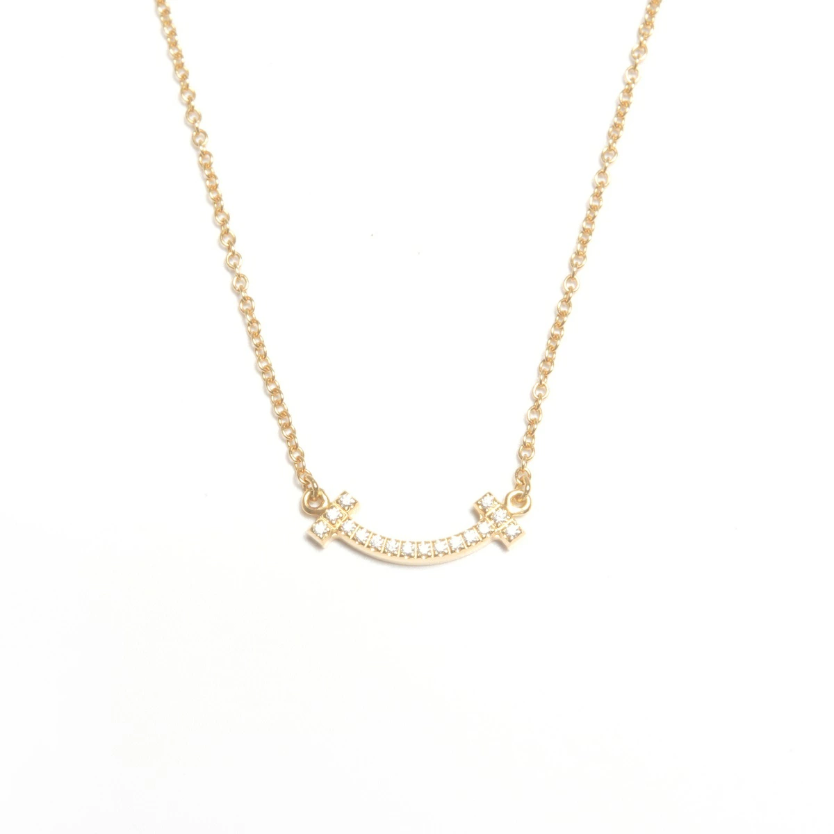 [21% OFF All Items! Until 11:59 PM on November 30th] Tiffany & Co. T Smile Au750 Diamond Necklace Gold WS24591 [Pre-owned]