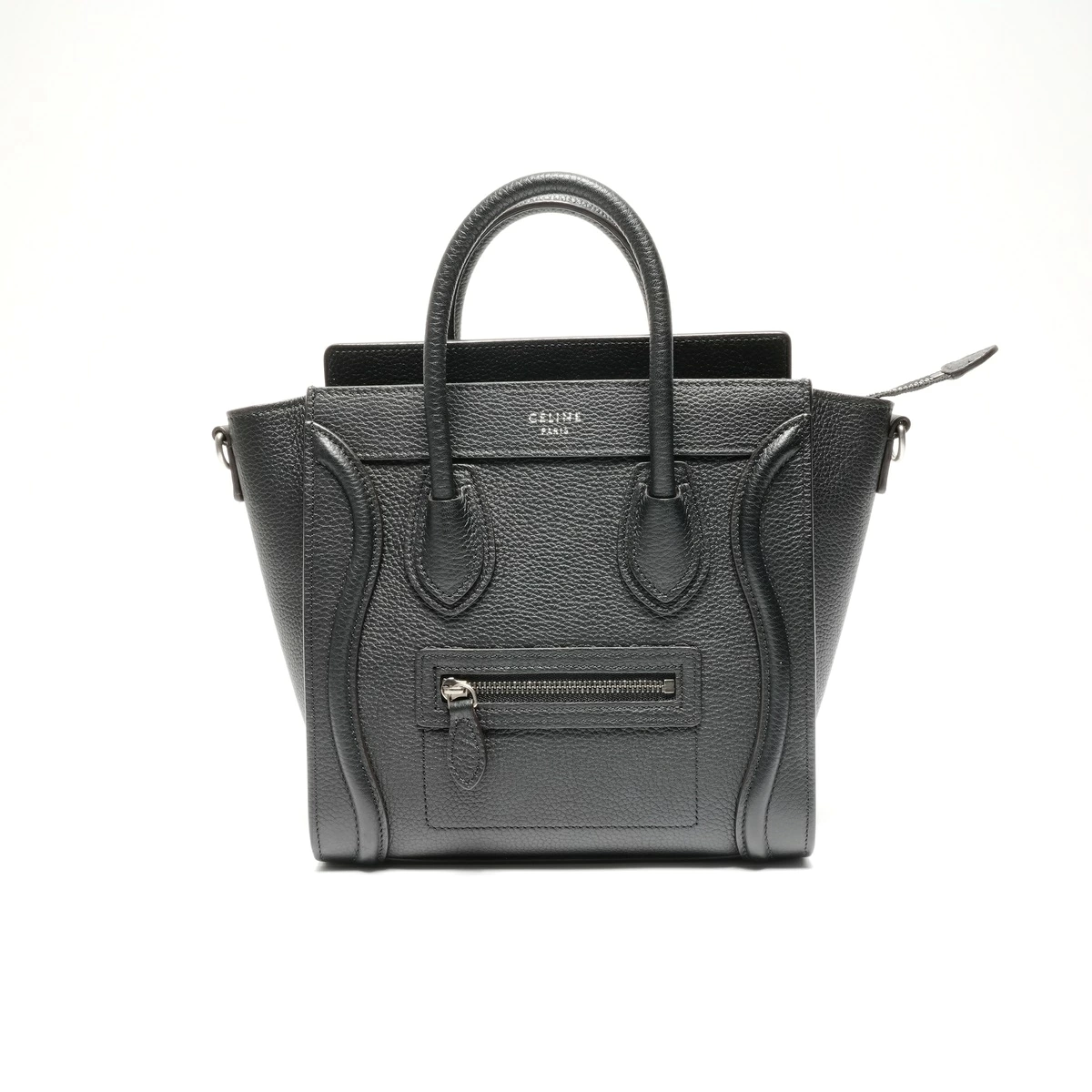 Pre-owned Celine Nano Leather Luggage 2-Way Handbag, Black, WS24637
