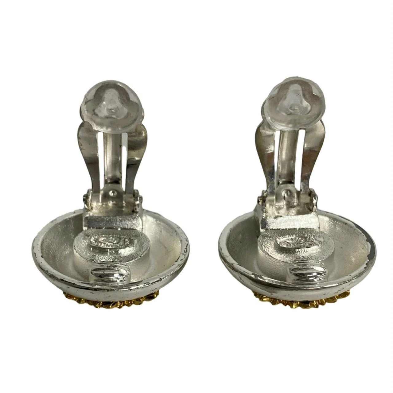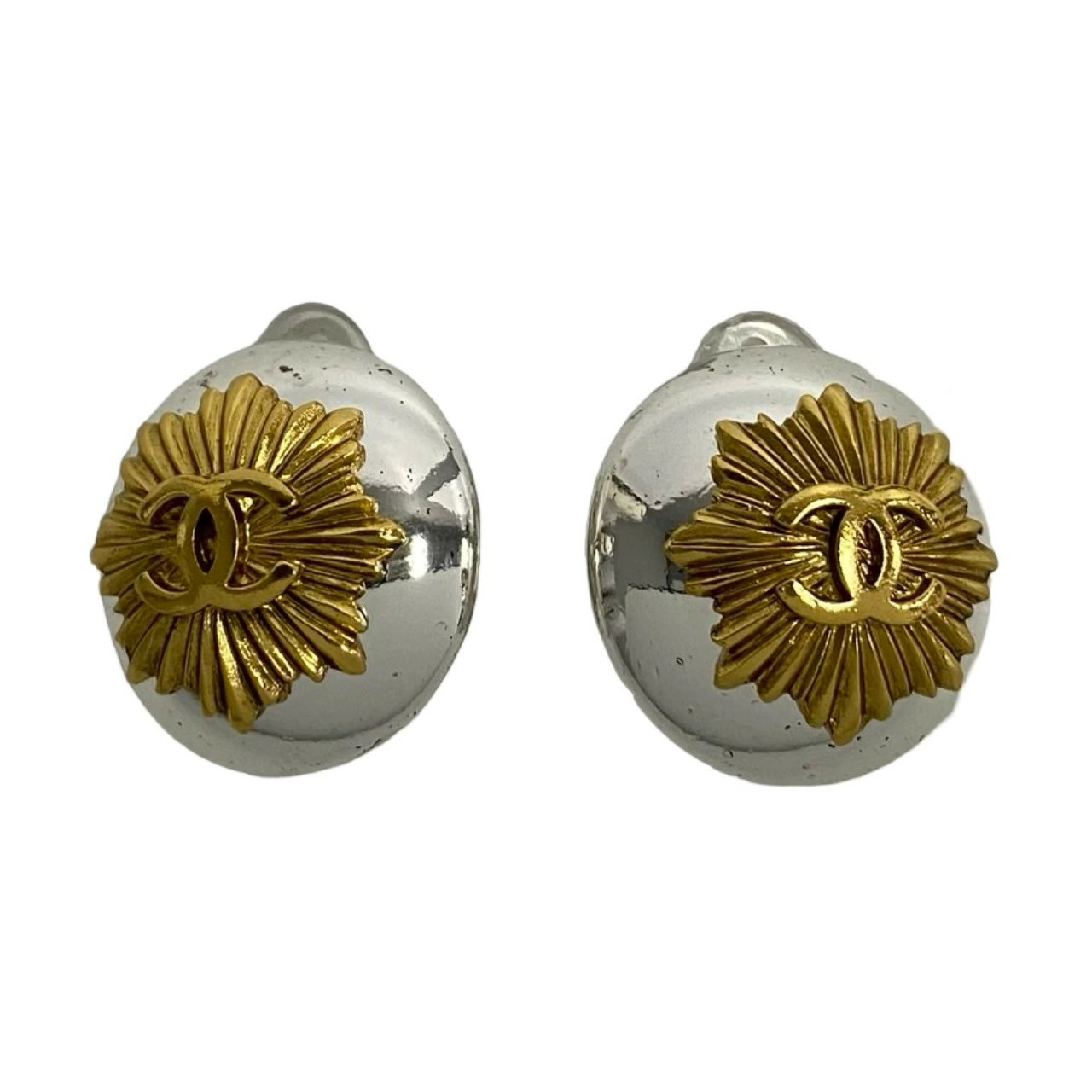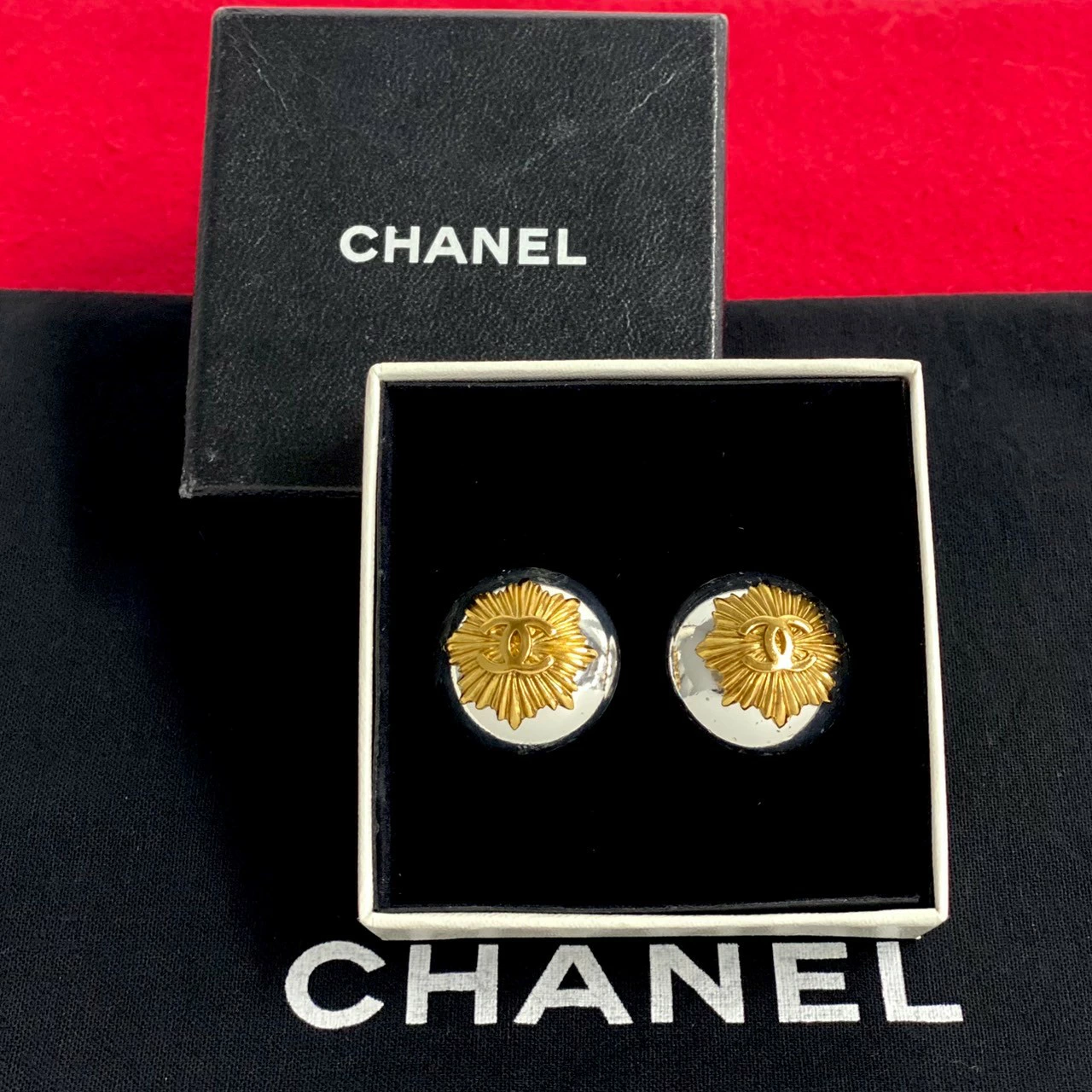 [Double Points] Excellent Condition, Marked, with Box, CHANEL 97P Engraved Coco Mark Logo Motif Earrings, GP Silver, 28291 [Pre-owned]