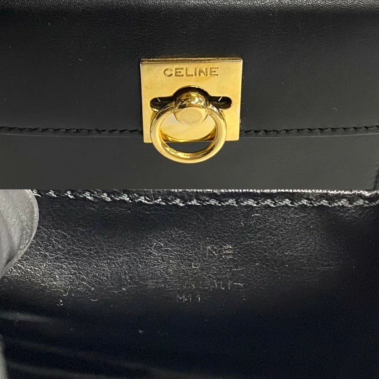 Earn double points! Excellent condition, rare Celine vintage ring with logo hardware, genuine calf leather mini handbag/pouch in black (product number 68803). Pre-owned.