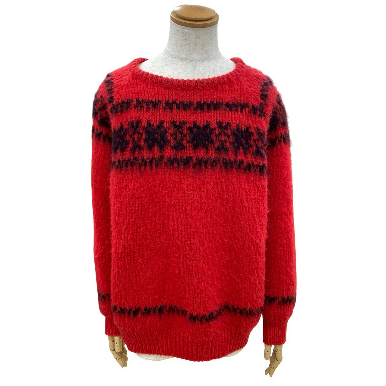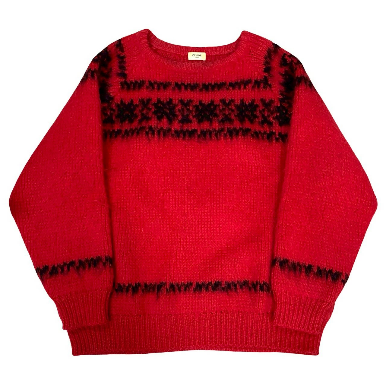 Earn double points! Excellent condition Celine brushed wool crew neck sweater, size L, women's, red, 06209 (pre-owned).