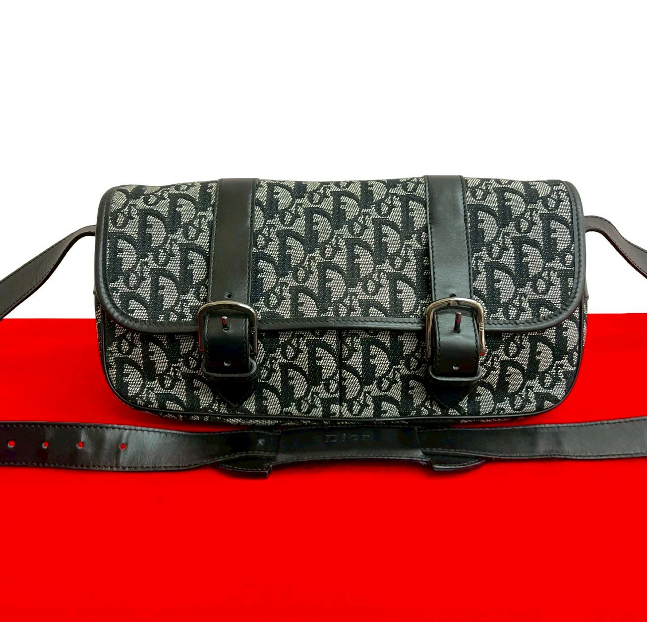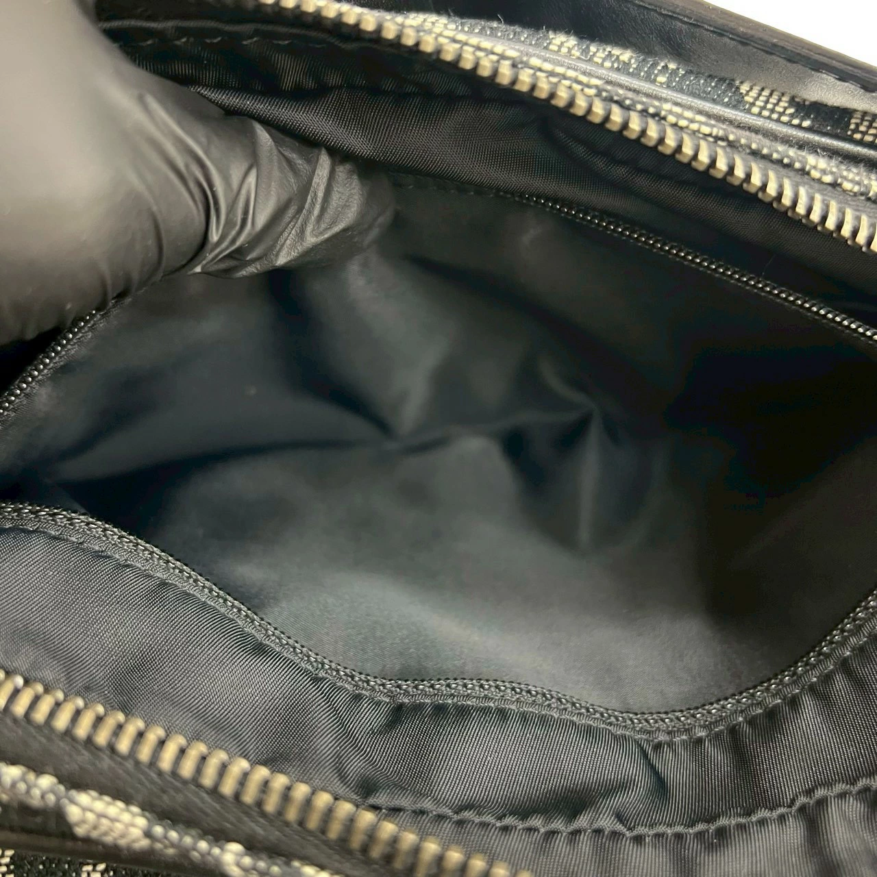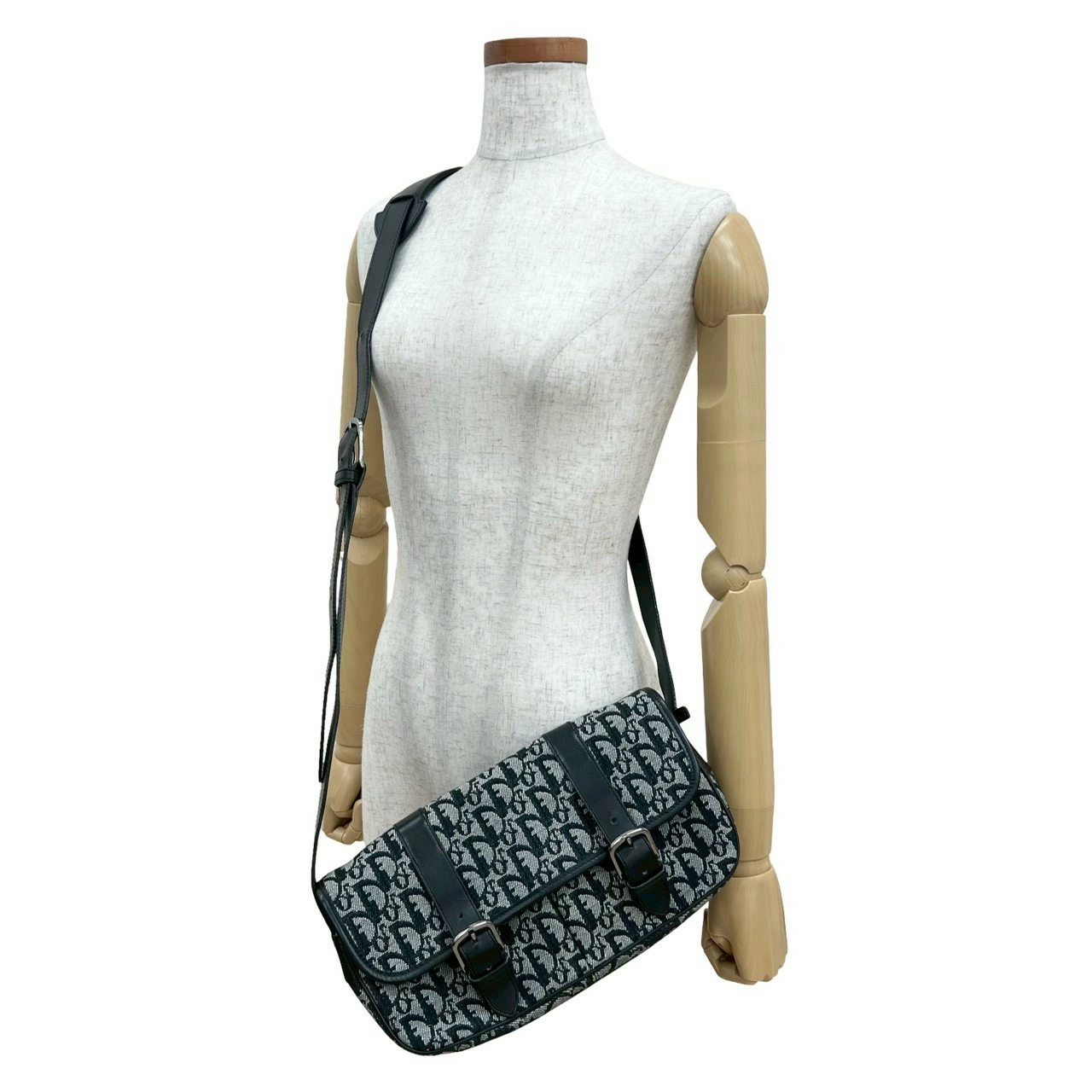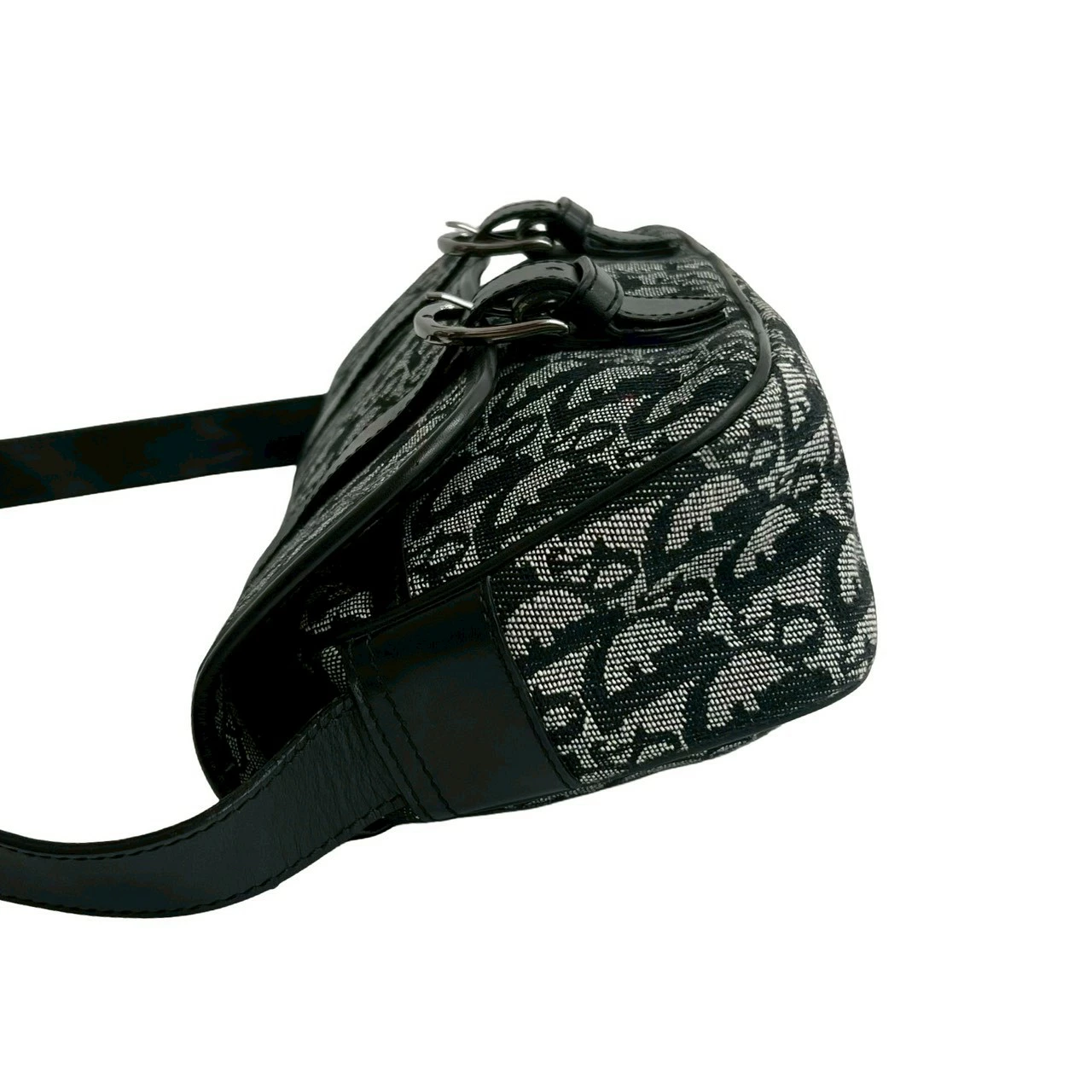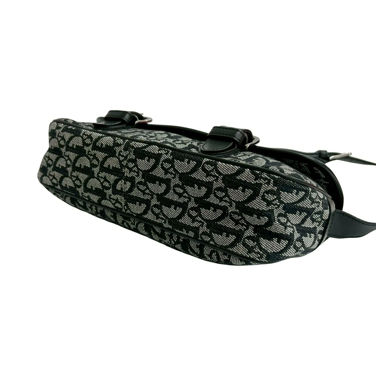 [Double Points] Excellent Condition Christian Dior Trotter Pattern Canvas and Leather Shoulder Bag/Pochette/Sacoche in Black (25863) [Pre-owned]