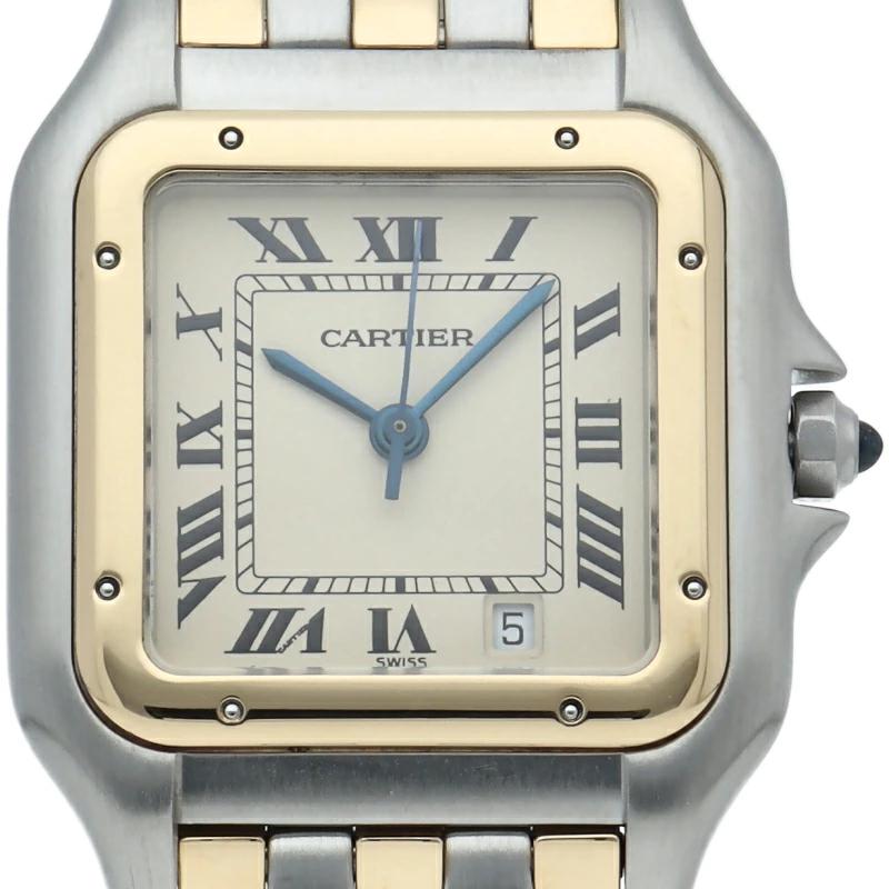 | カルティエの生産終了となった人気モデル「パンテール」。シンプルかつ上品なデザインでスタイルを選ばずにご使用いただけます。 |