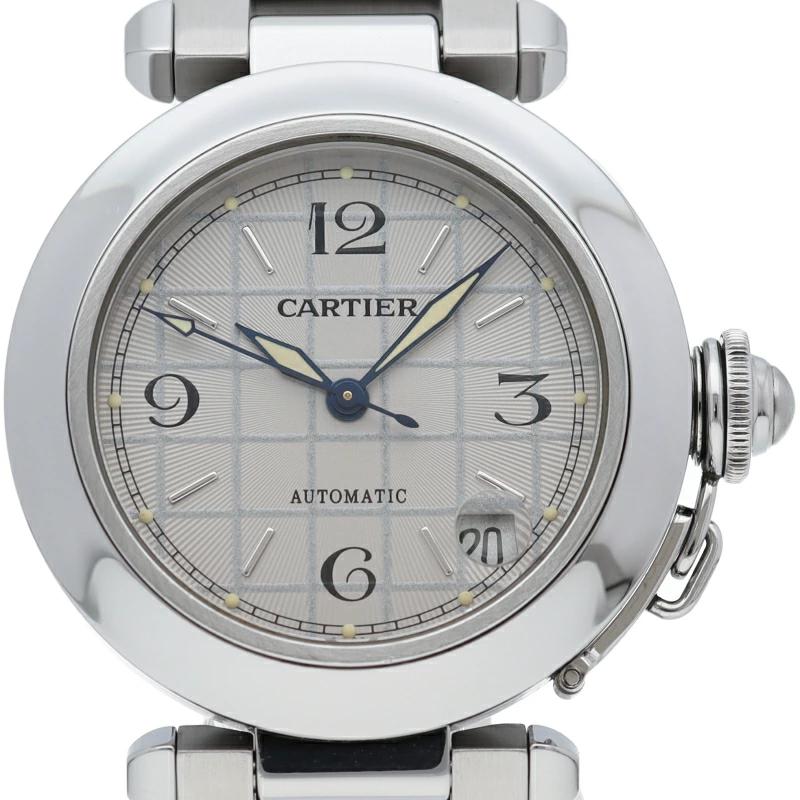 | カルティエの人気パシャCシリーズ。4時と5時の間にデイト表示機能が付いた実用性のある1本。どんなシーンにも活用できるラウンドケースがオシャレです。 |