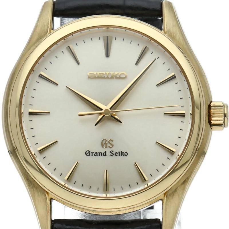 | 本が誇る名品「グランドセイコー」のシンプルな3針モデルです。すでに生産は終了していますが、セイコーらしいクリーンなデザインは、今見ても古びていません。 |